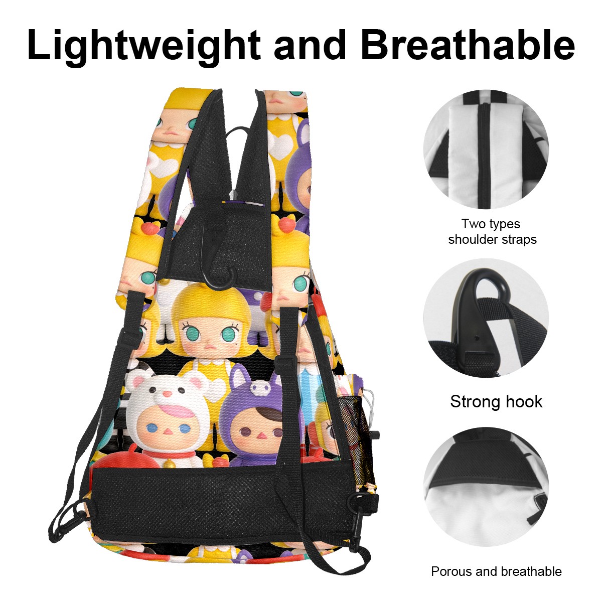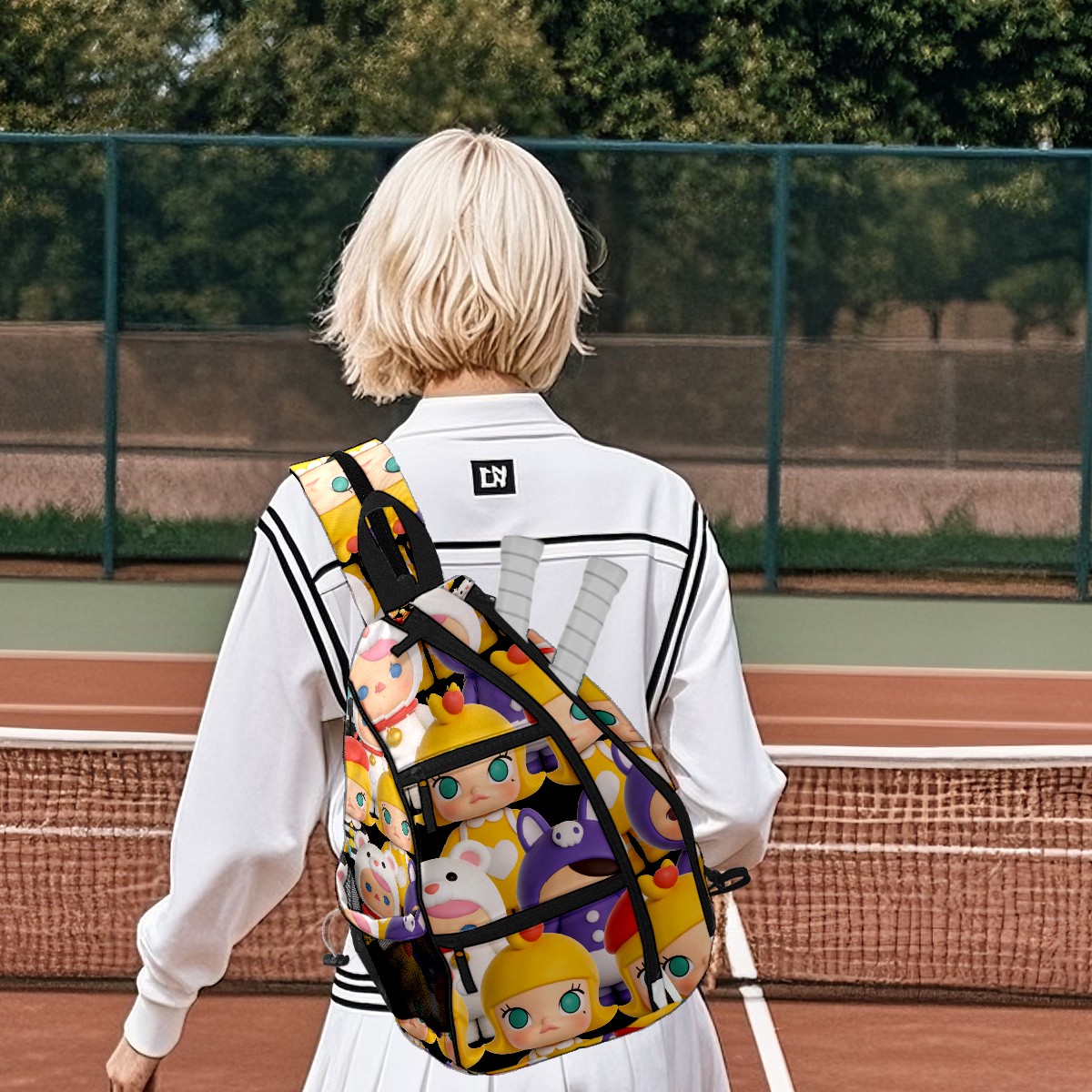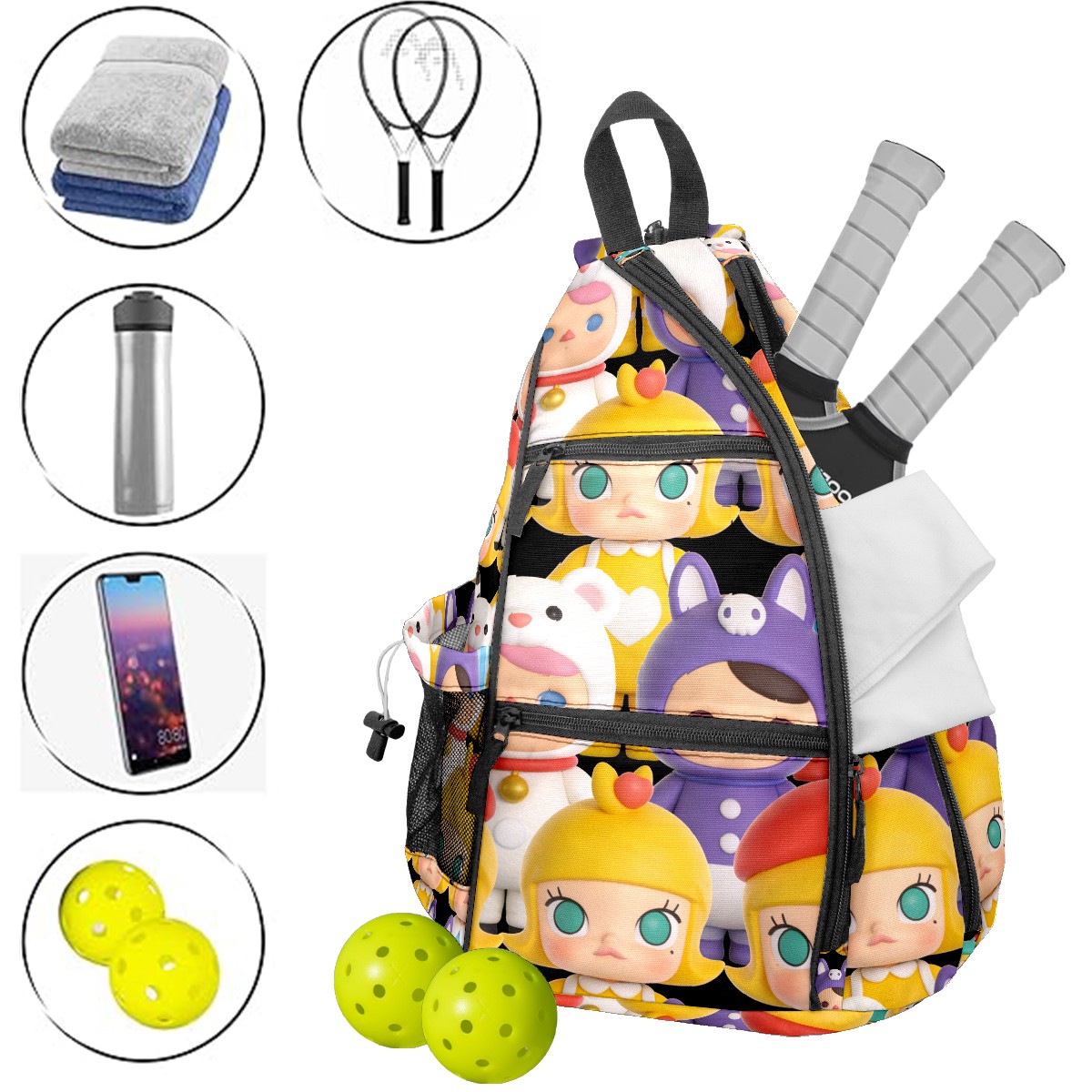 Pickleball Backpack for Women and Men, Adjustable Pickleball Sling Bag for Paddles, Balls & Accessories (创作经典IP图 (38))