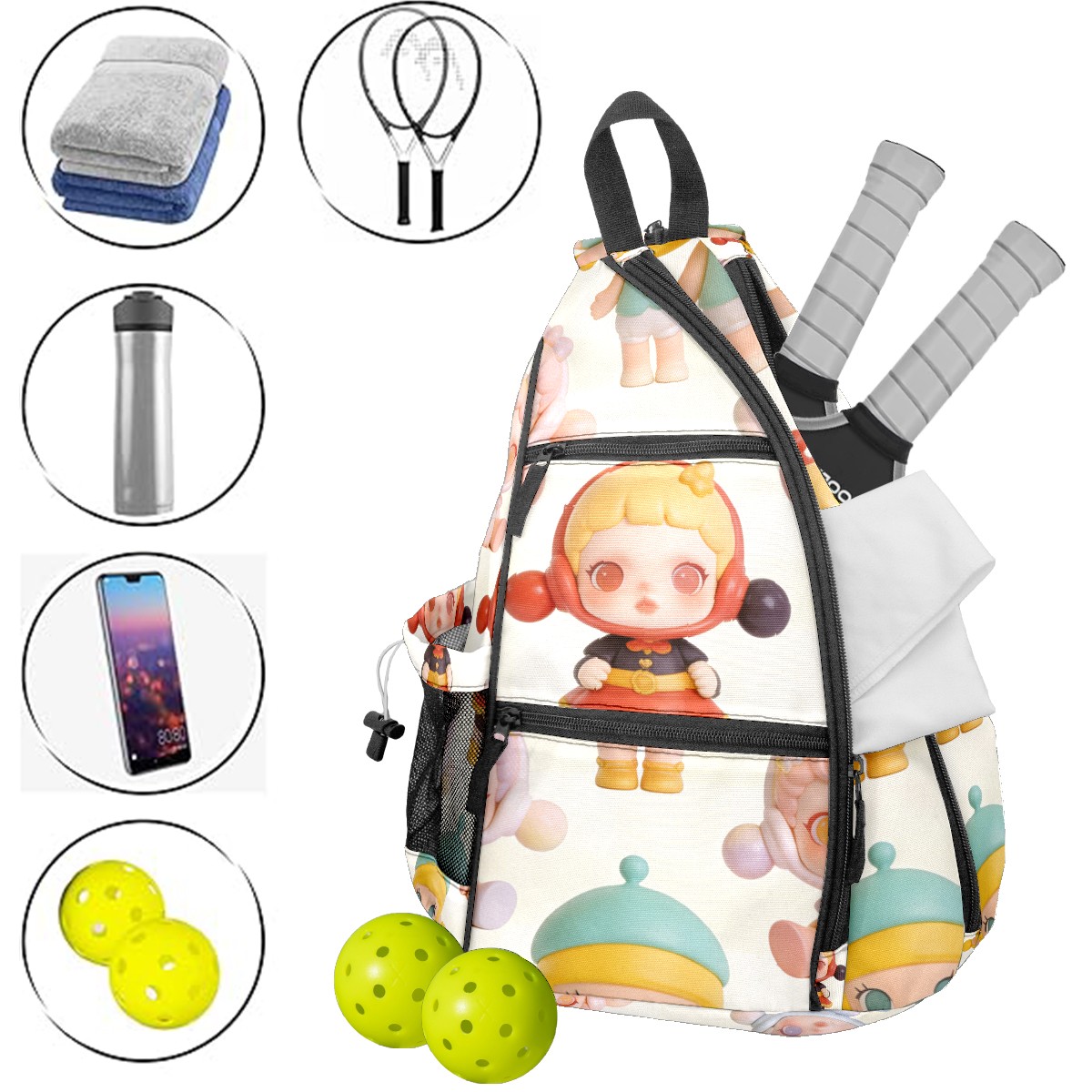 Pickleball Backpack for Women and Men, Adjustable Pickleball Sling Bag for Paddles, Balls & Accessories (创作经典IP图 (40))
