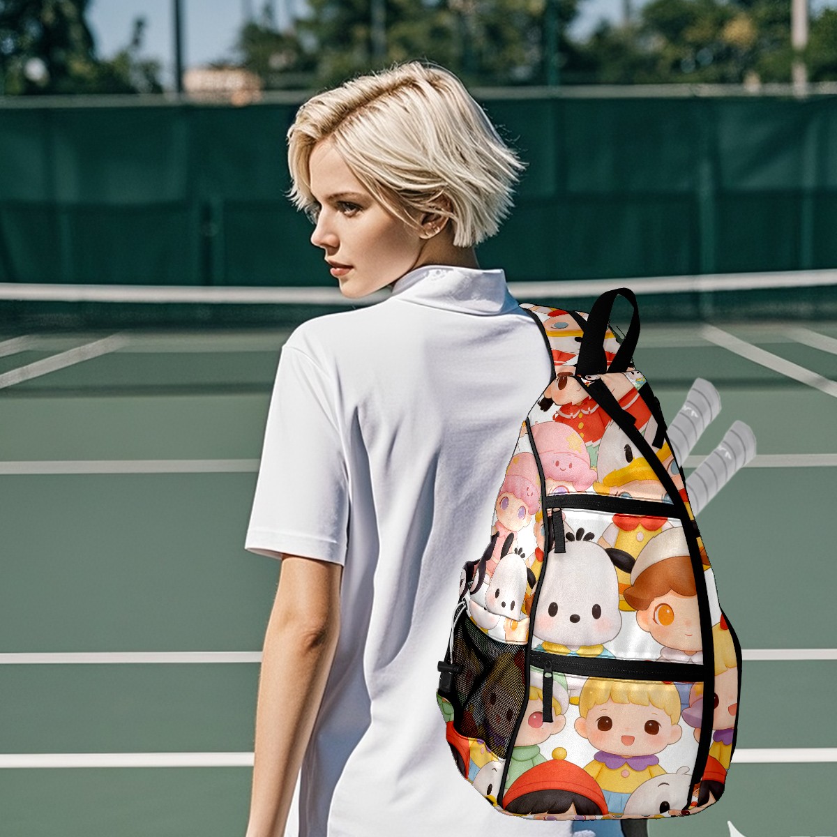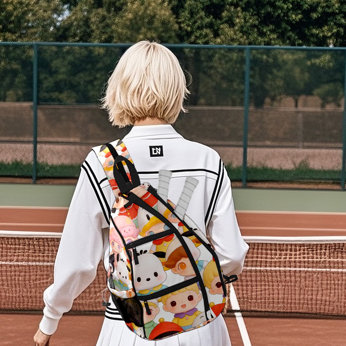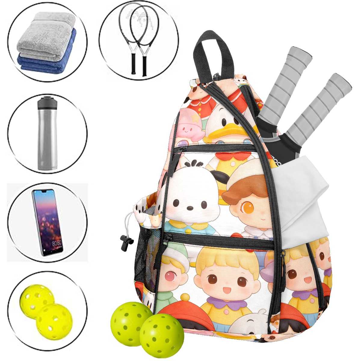 Pickleball Backpack for Women and Men, Adjustable Pickleball Sling Bag for Paddles, Balls & Accessories (创作经典IP图 (22))