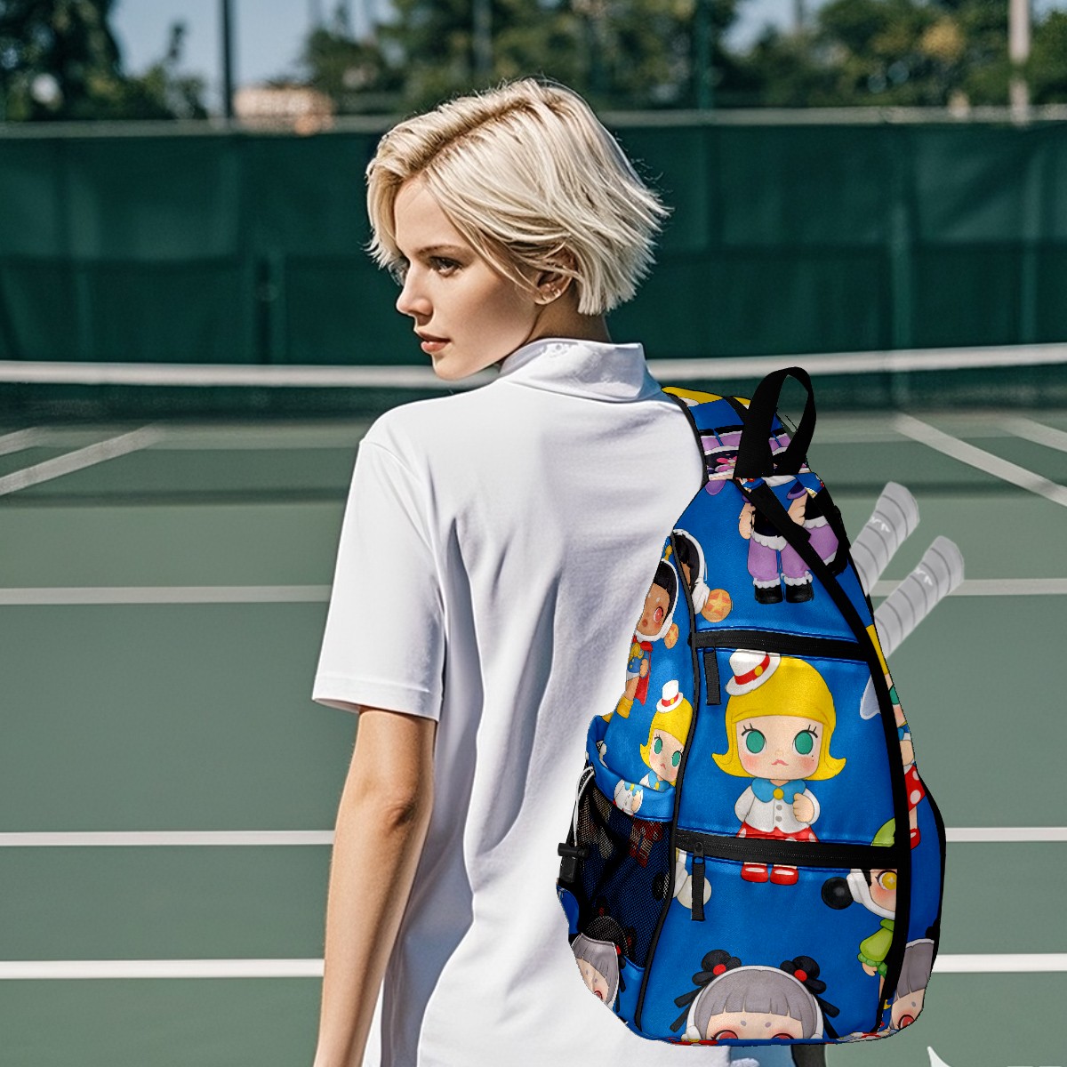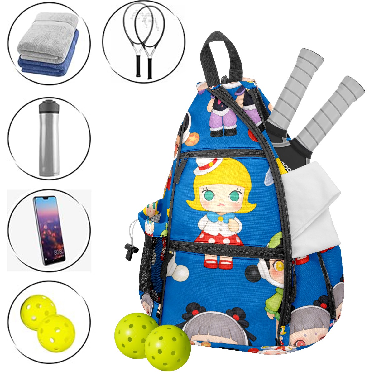 Pickleball Backpack for Women and Men, Adjustable Pickleball Sling Bag for Paddles, Balls & Accessories (创作经典IP图 (32))