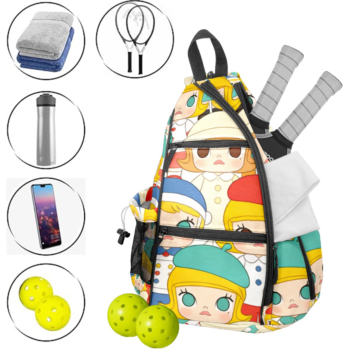 Pickleball Backpack for Women and Men, Adjustable Pickleball Sling Bag for Paddles, Balls & Accessories (创作经典IP图 (14))