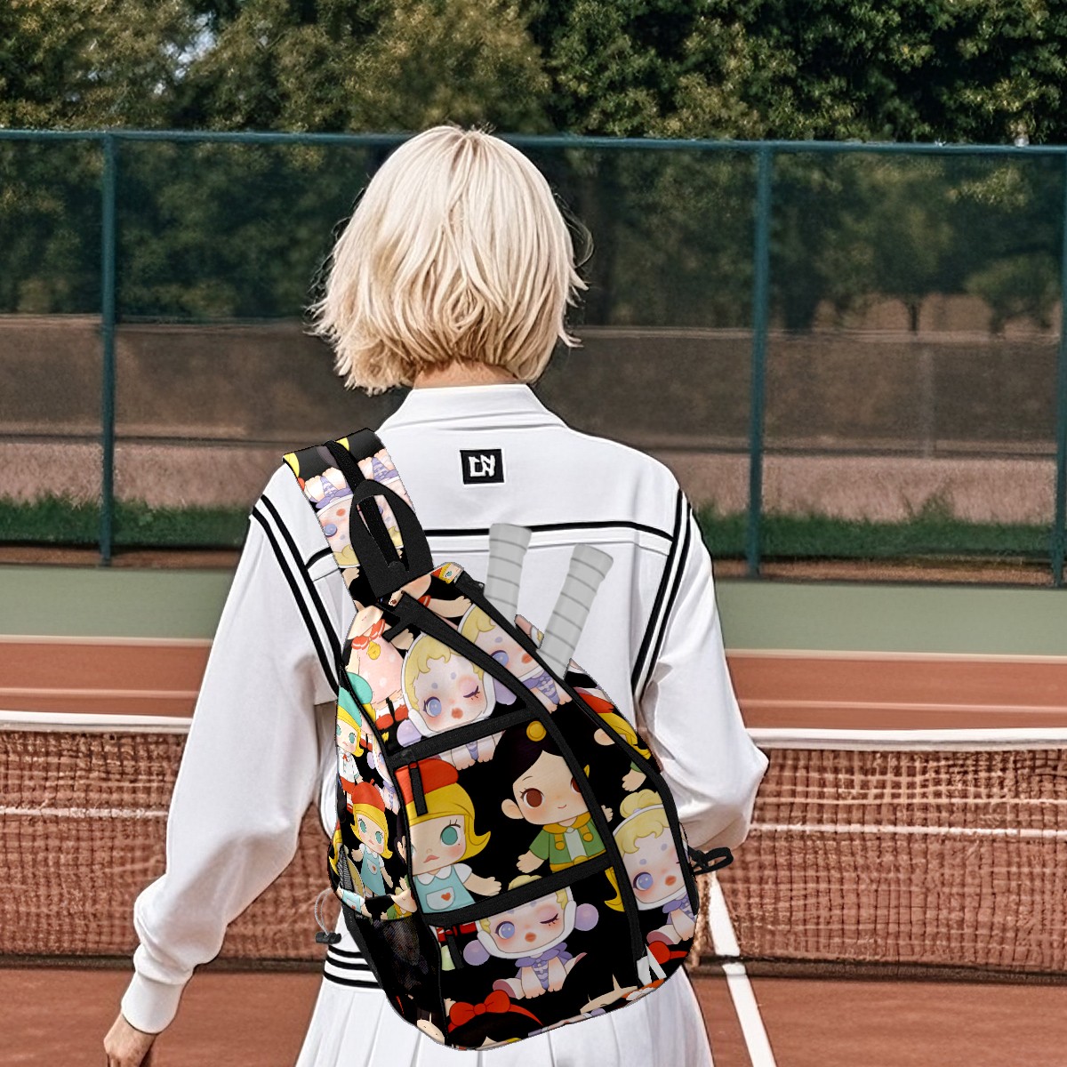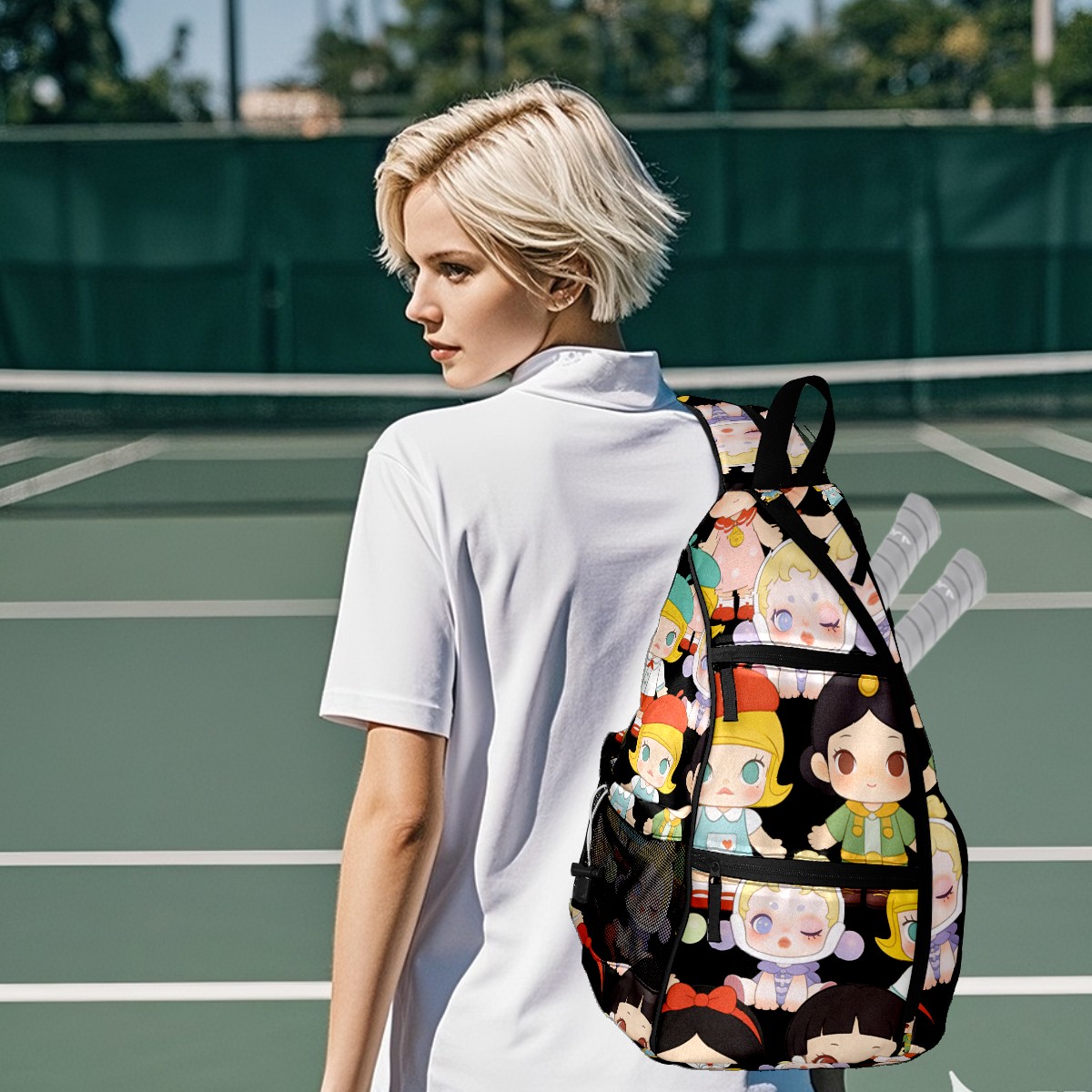Pickleball Backpack for Women and Men, Adjustable Pickleball Sling Bag for Paddles, Balls & Accessories (创作经典IP图 (18))