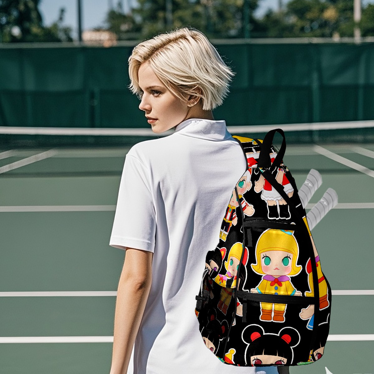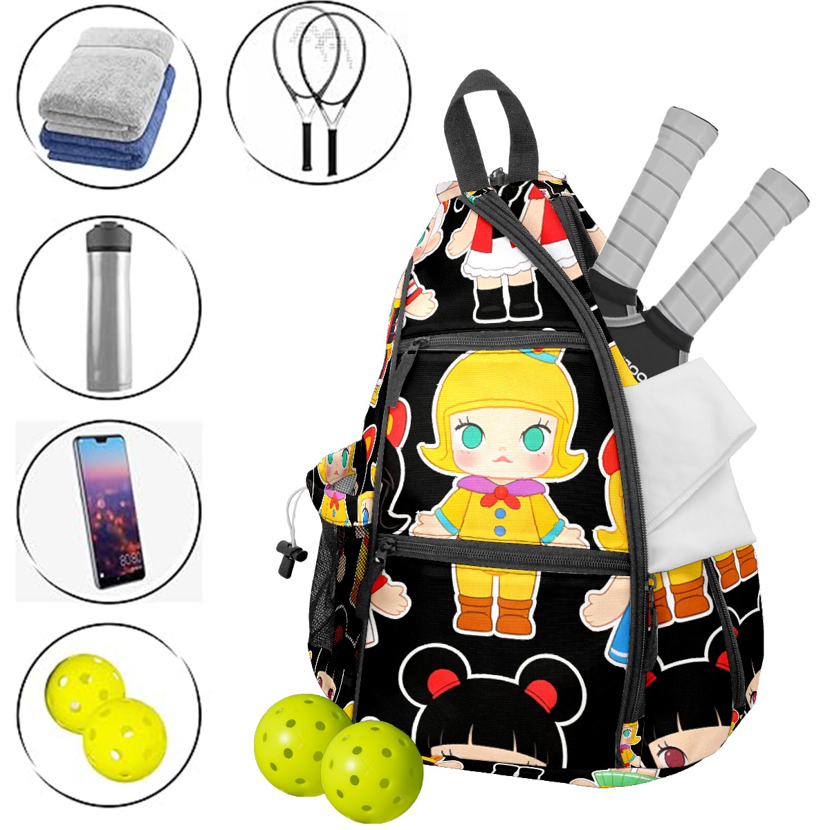 Pickleball Backpack for Women and Men, Adjustable Pickleball Sling Bag for Paddles, Balls & Accessories (创作经典IP图 (30))