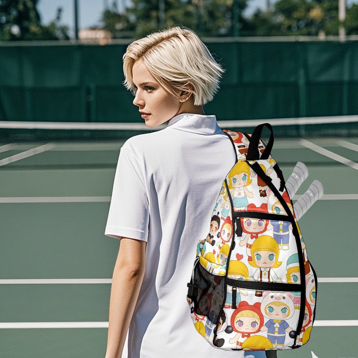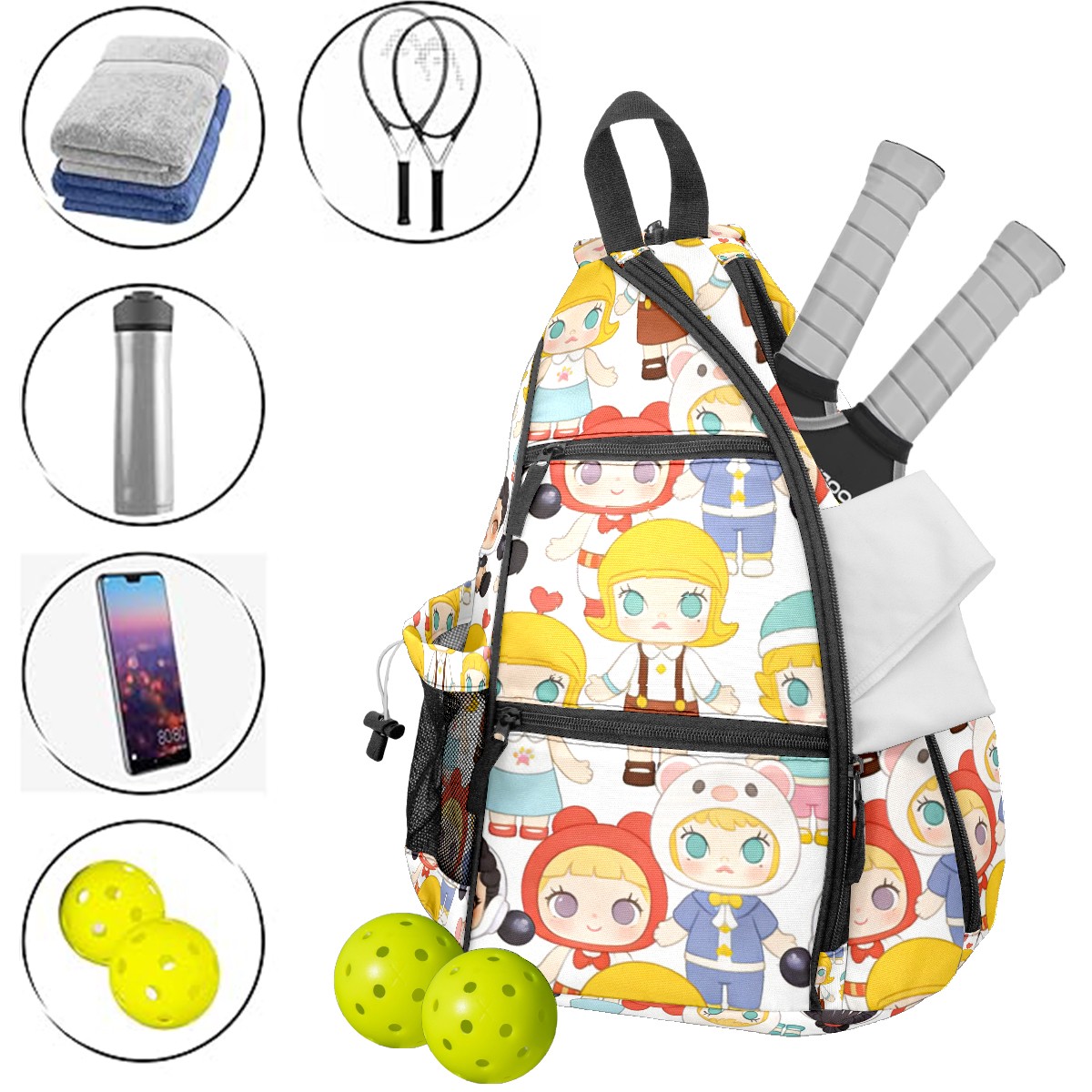 Pickleball Backpack for Women and Men, Adjustable Pickleball Sling Bag for Paddles, Balls & Accessories (创作经典IP图 (17))