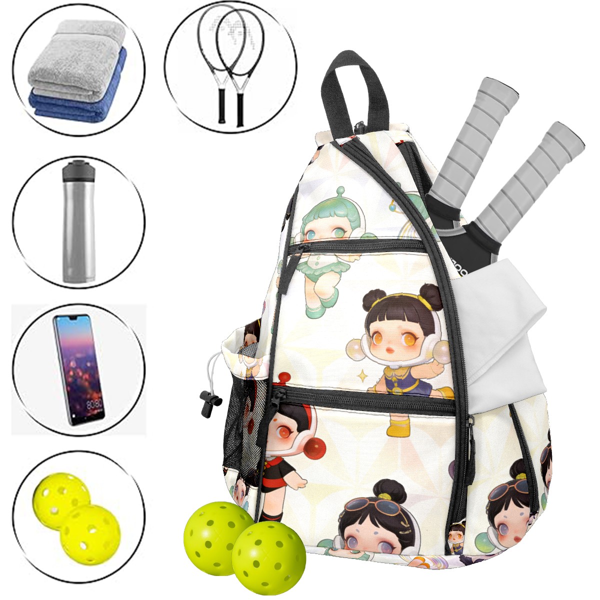 Pickleball Backpack for Women and Men, Adjustable Pickleball Sling Bag for Paddles, Balls & Accessories (创作经典IP图 (8))