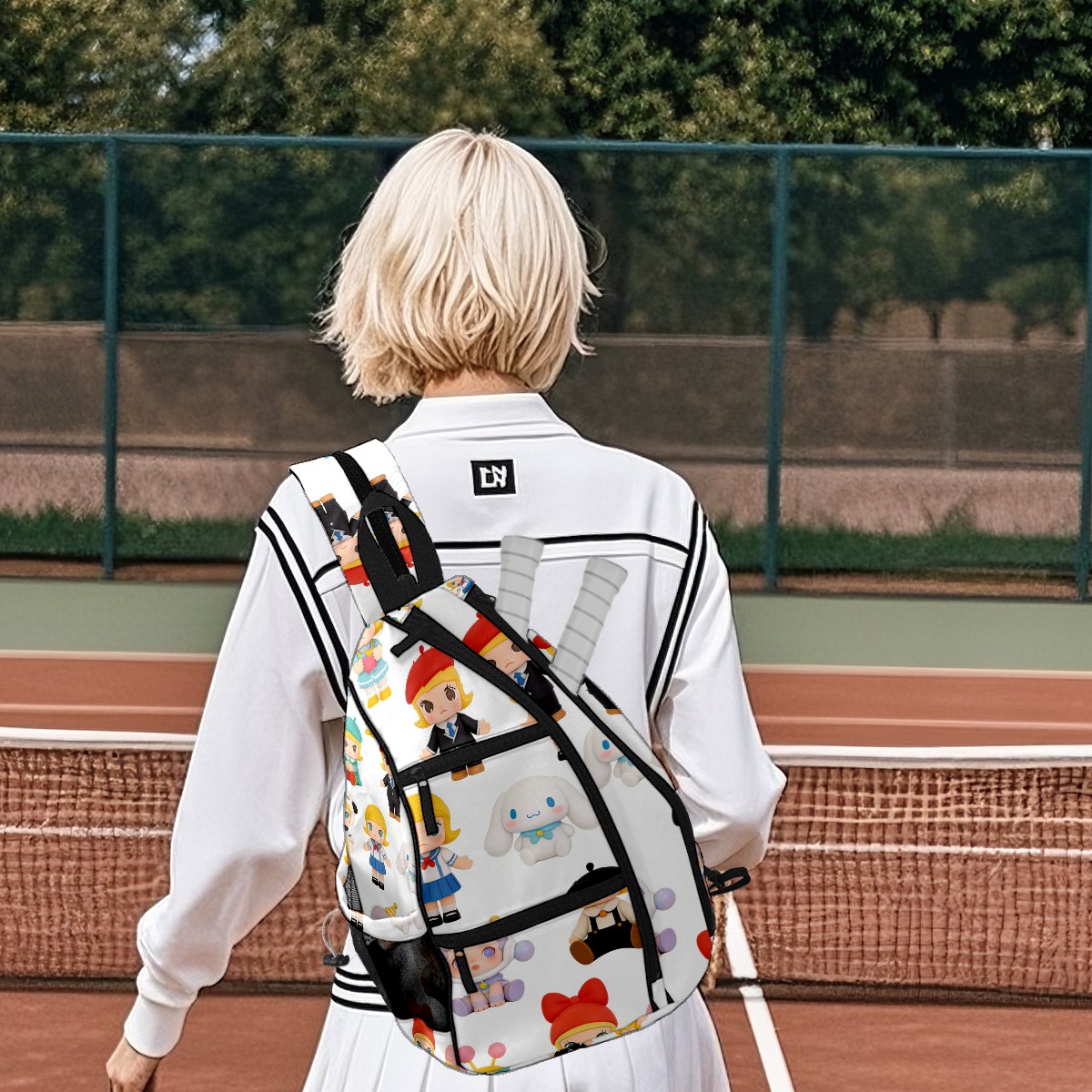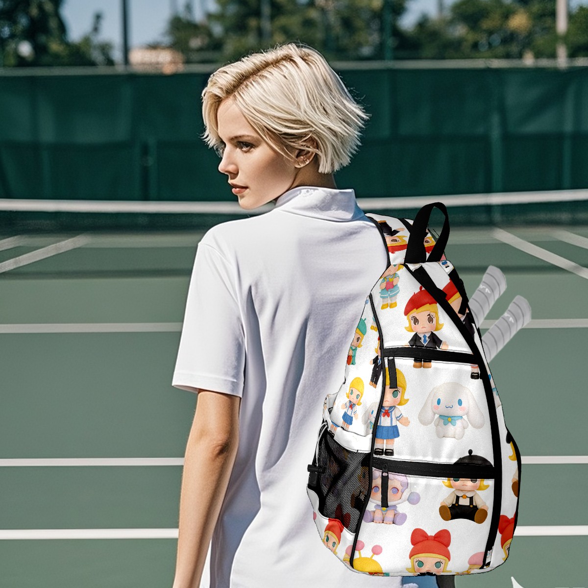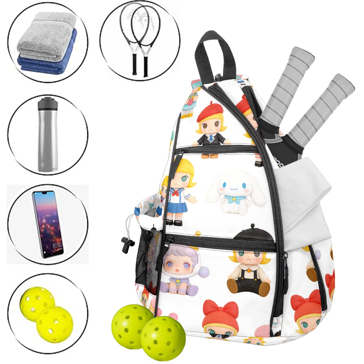 Pickleball Backpack for Women and Men, Adjustable Pickleball Sling Bag for Paddles, Balls & Accessories (创作经典IP图 (20))