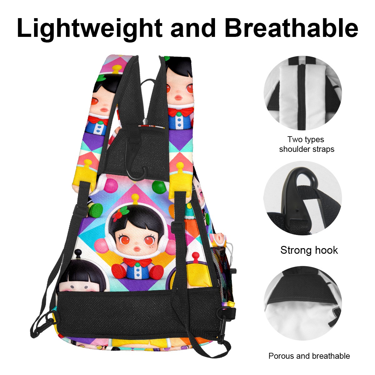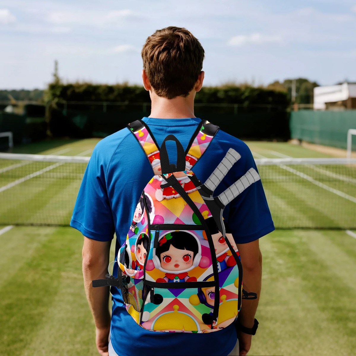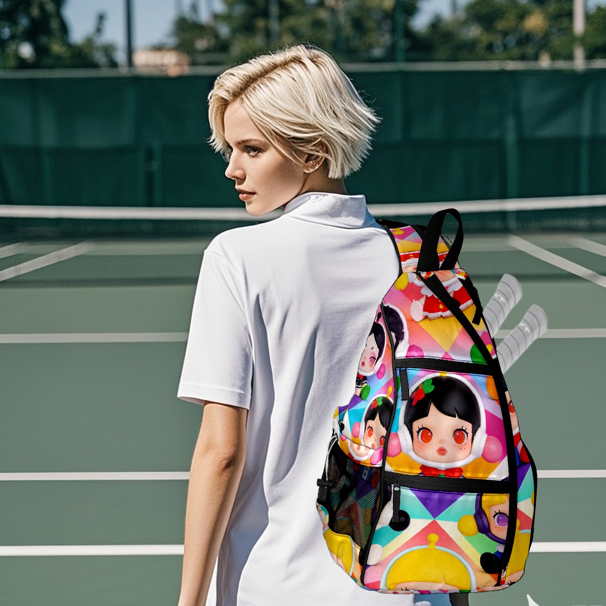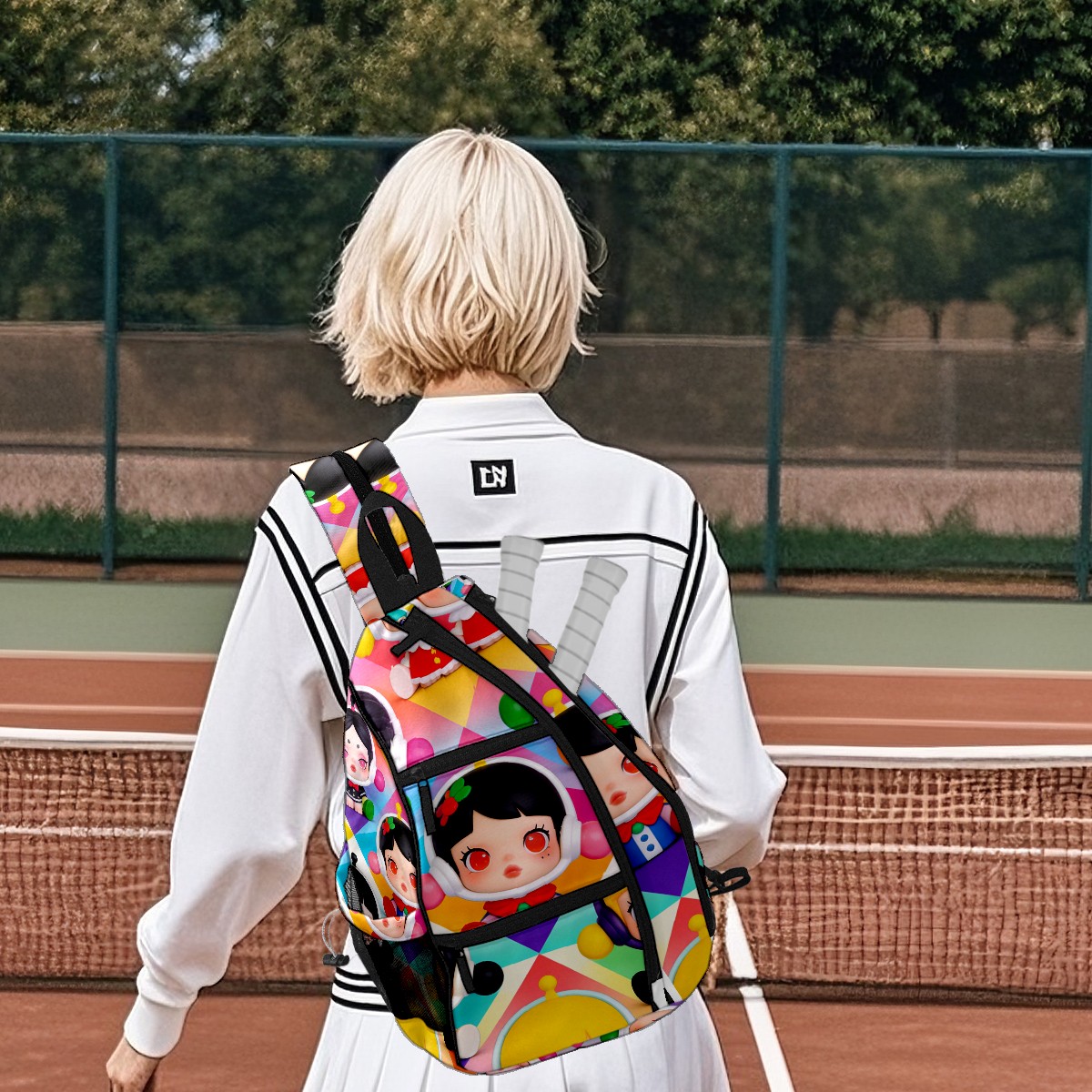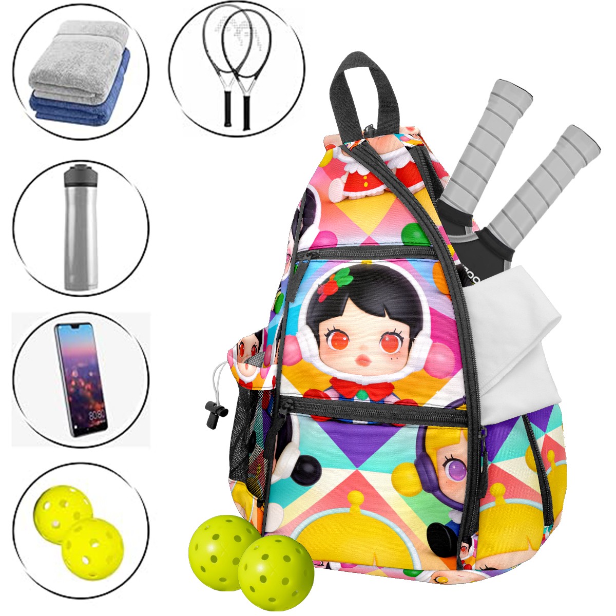 Pickleball Backpack for Women and Men, Adjustable Pickleball Sling Bag for Paddles, Balls & Accessories (创作经典IP图 (9))