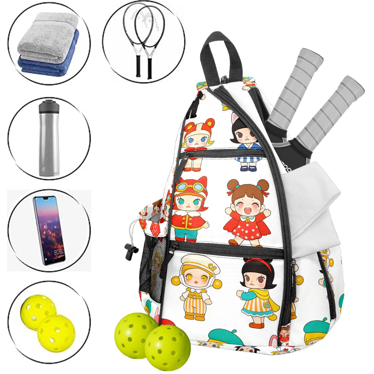 Pickleball Backpack for Women and Men, Adjustable Pickleball Sling Bag for Paddles, Balls & Accessories (创作经典IP图 (11))