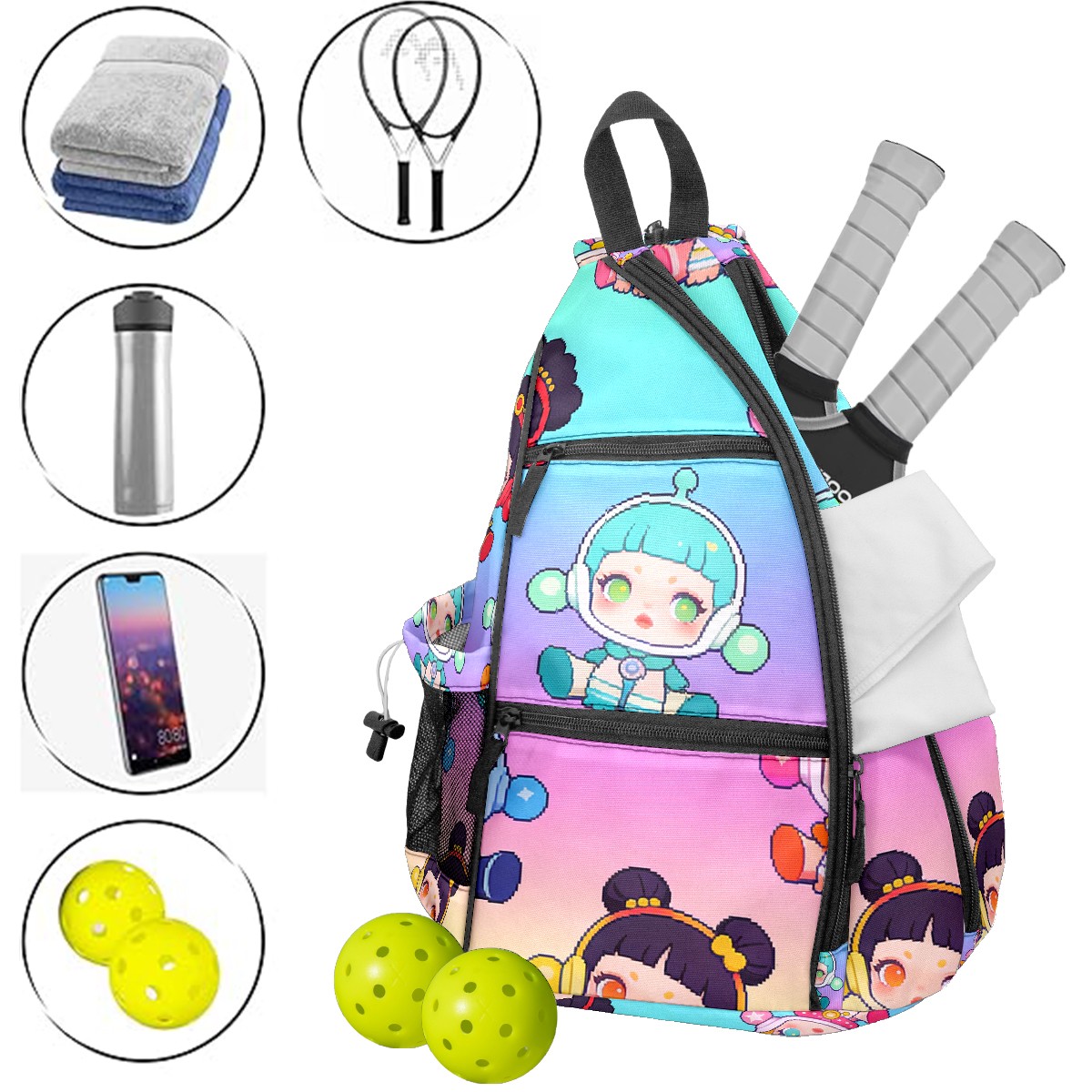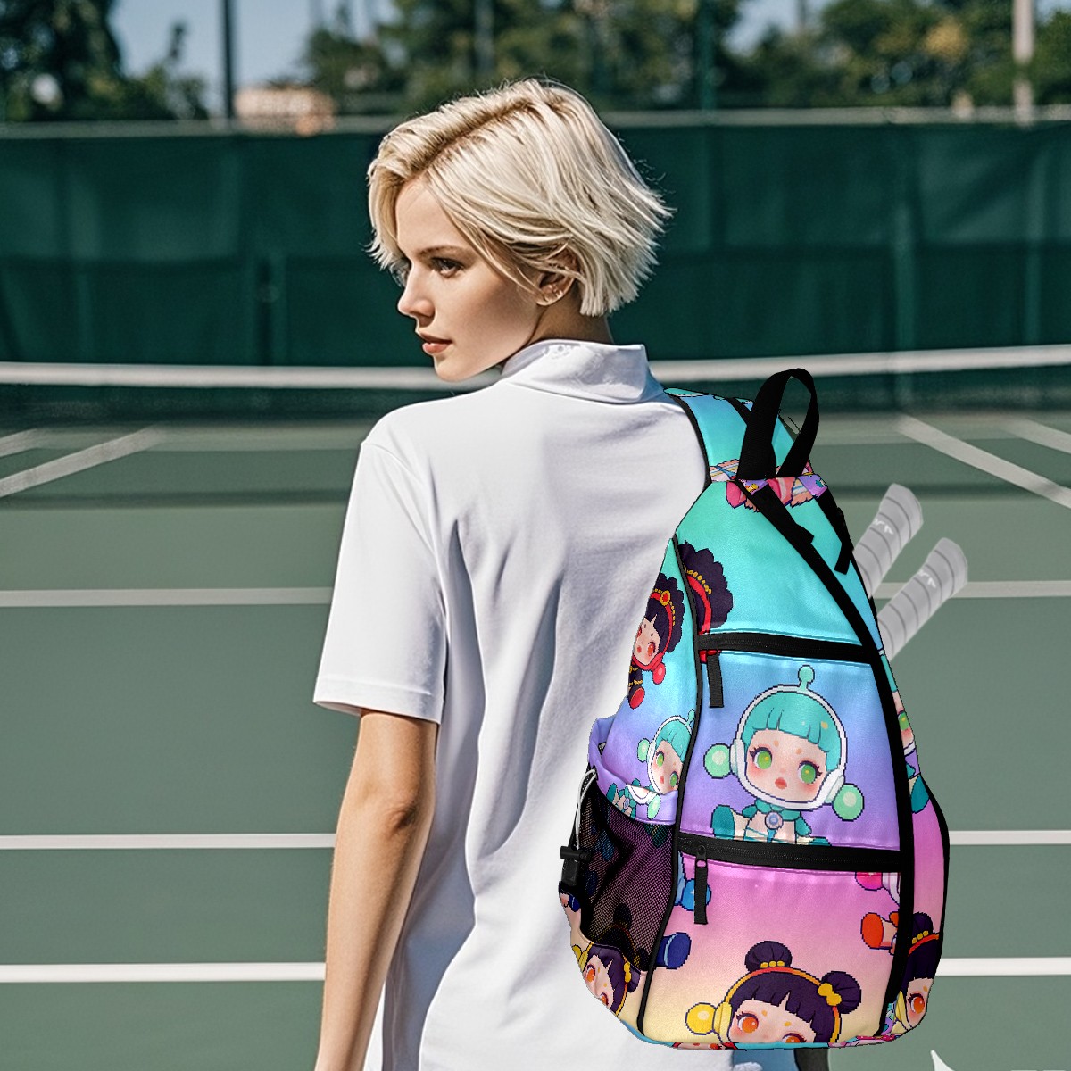 Pickleball Backpack for Women and Men, Adjustable Pickleball Sling Bag for Paddles, Balls & Accessories (创作经典IP图 - 2026-02-12T092148.220)