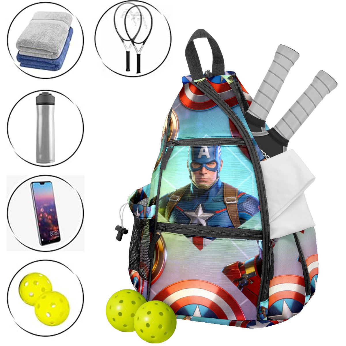 Pickleball Backpack for Women and Men, Adjustable Pickleball Sling Bag for Paddles, Balls & Accessories (创作经典IP图 (95))