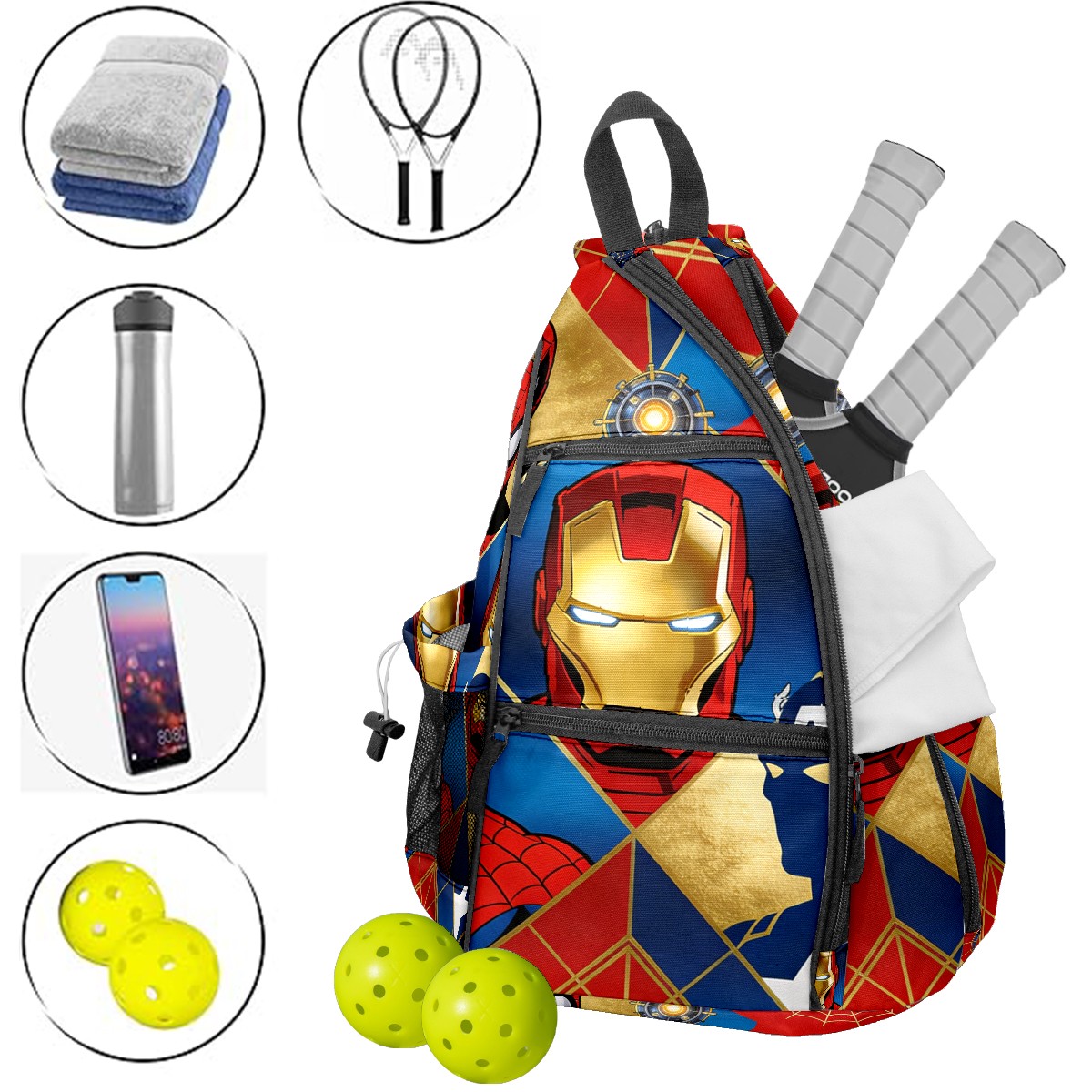 Pickleball Backpack for Women and Men, Adjustable Pickleball Sling Bag for Paddles, Balls & Accessories (创作经典IP图 (93))