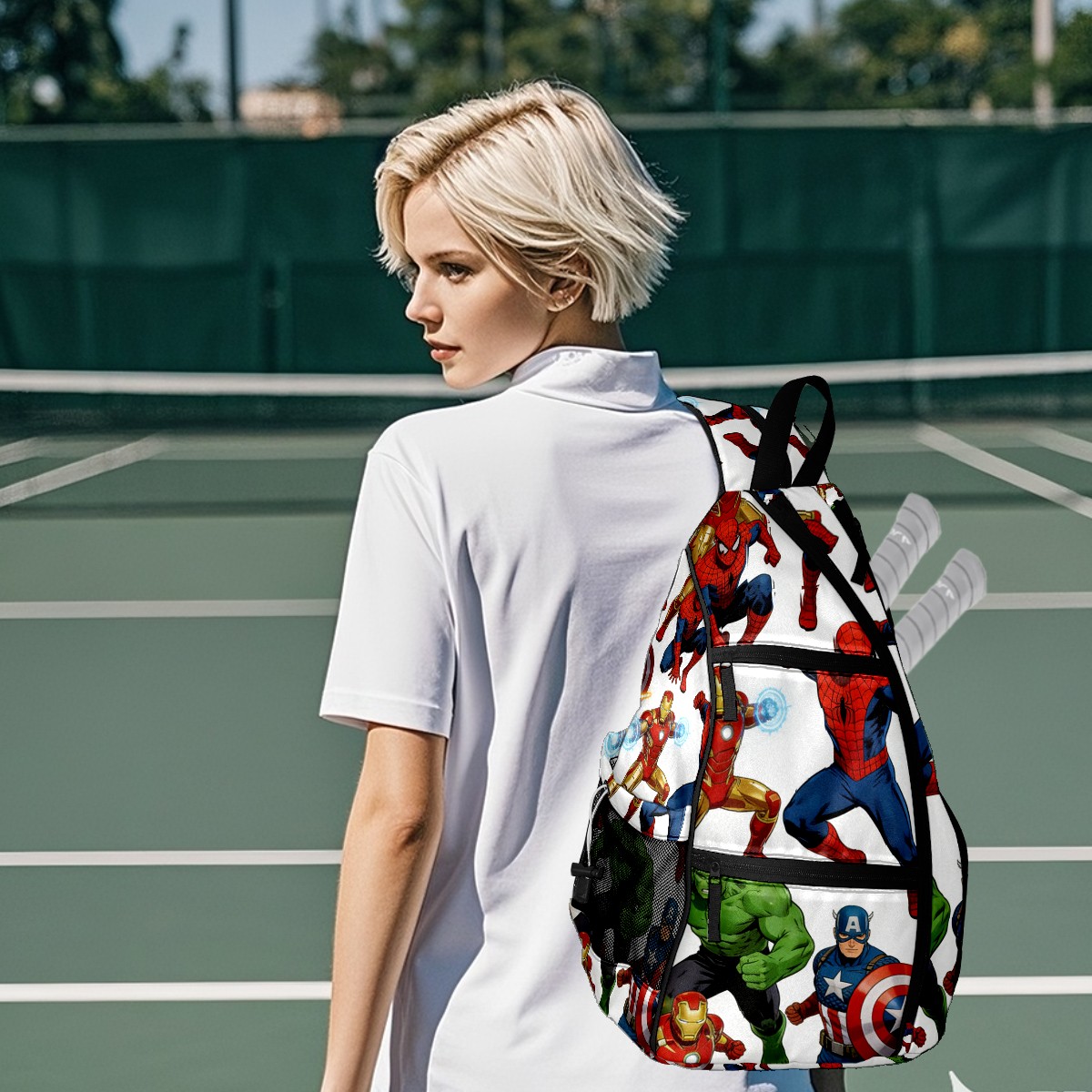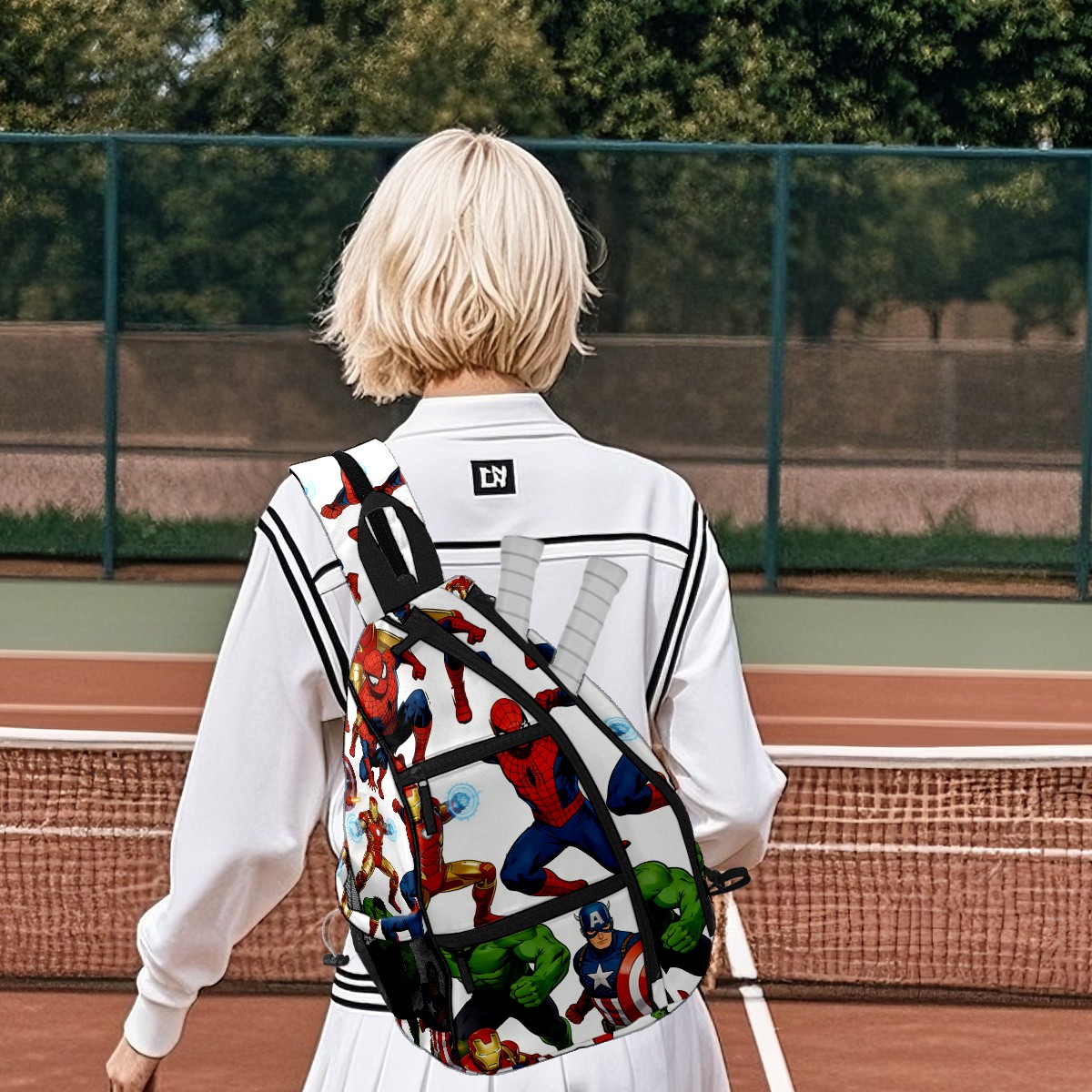 Pickleball Backpack for Women and Men, Adjustable Pickleball Sling Bag for Paddles, Balls & Accessories (创作经典IP图 (90))