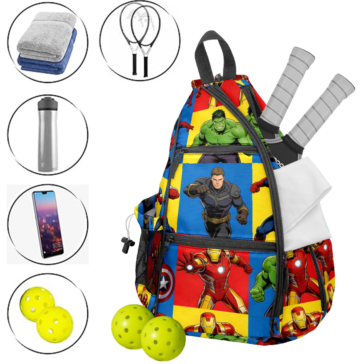 Pickleball Backpack for Women and Men, Adjustable Pickleball Sling Bag for Paddles, Balls & Accessories (创作经典IP图 (86))