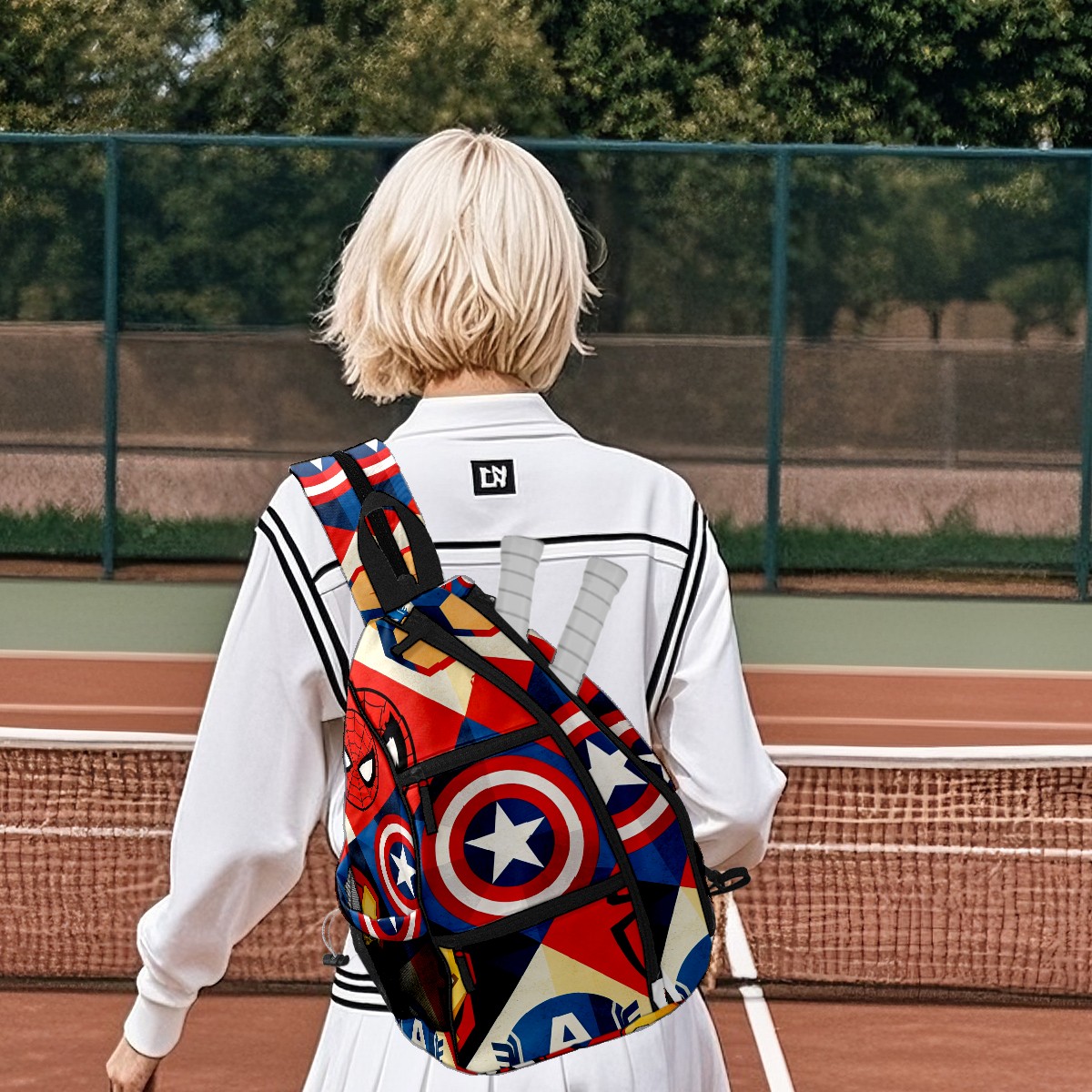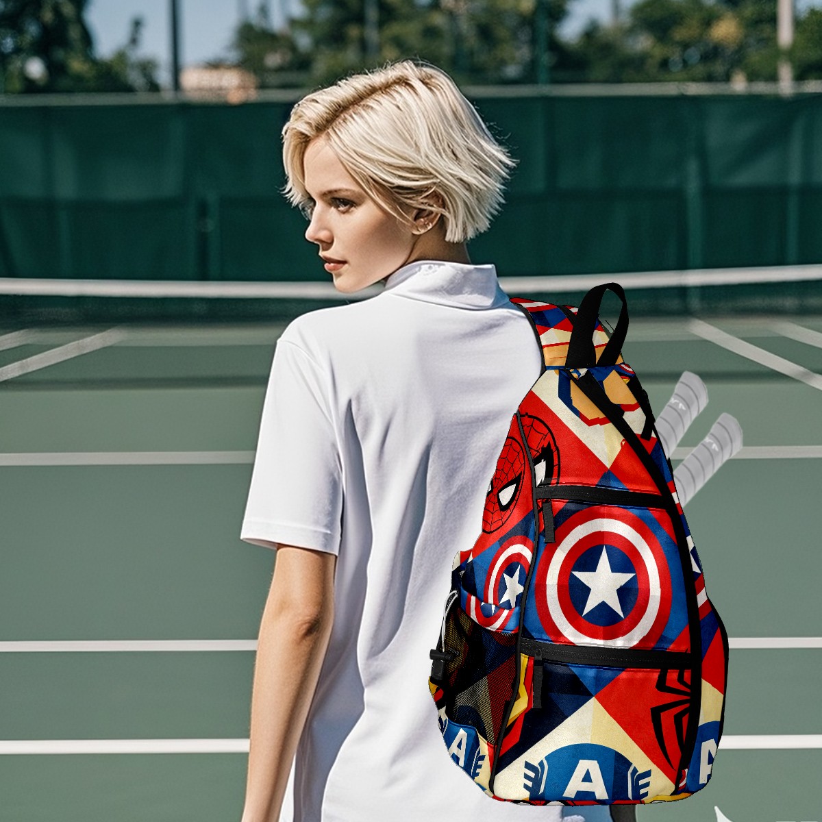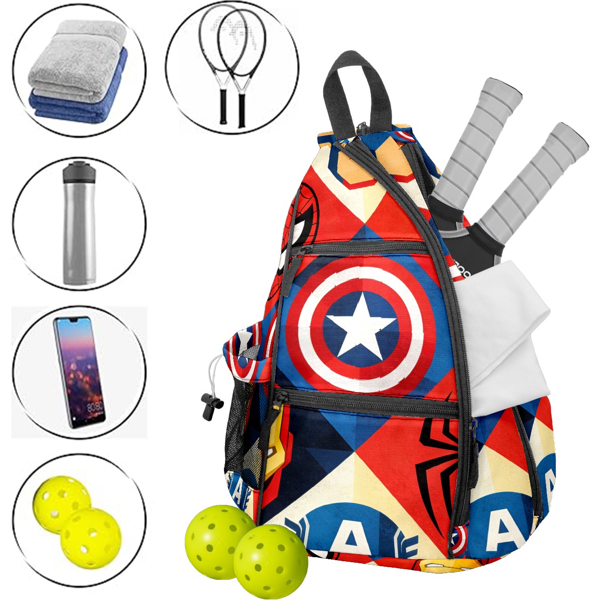 Pickleball Backpack for Women and Men, Adjustable Pickleball Sling Bag for Paddles, Balls & Accessories (创作经典IP图 (78))