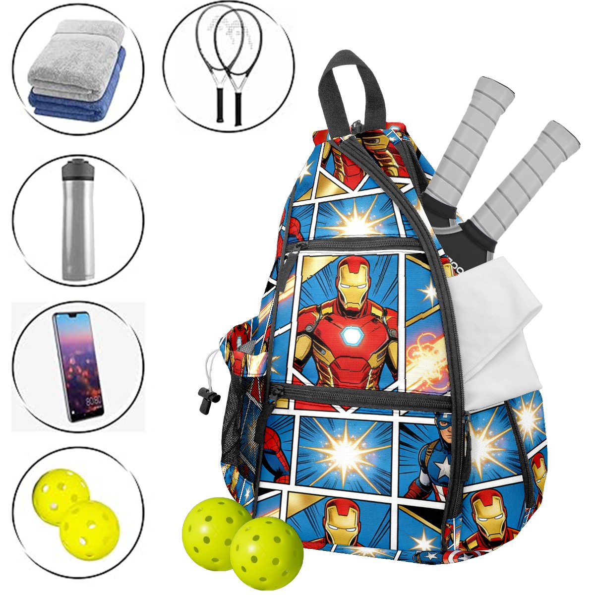 Pickleball Backpack for Women and Men, Adjustable Pickleball Sling Bag for Paddles, Balls & Accessories (创作经典IP图 (77))