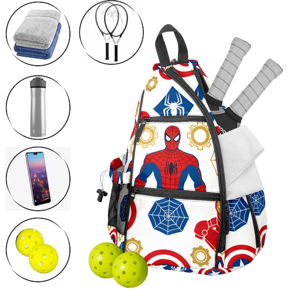 Pickleball Backpack for Women and Men, Adjustable Pickleball Sling Bag for Paddles, Balls & Accessories (创作经典IP图 (61))