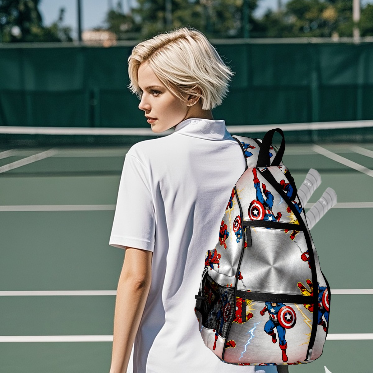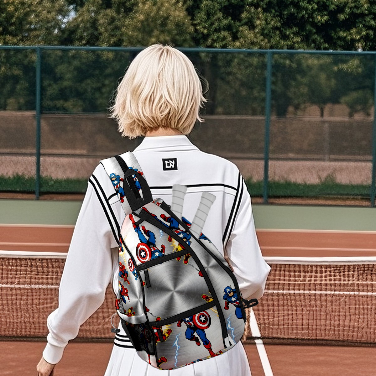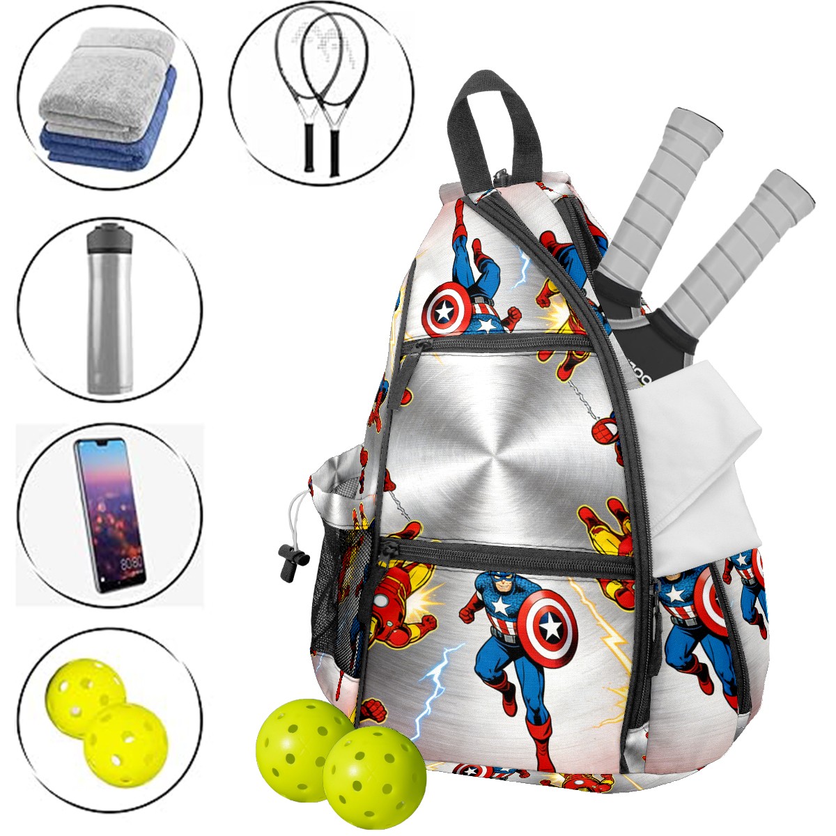 Pickleball Backpack for Women and Men, Adjustable Pickleball Sling Bag for Paddles, Balls & Accessories (创作经典IP图 (67))