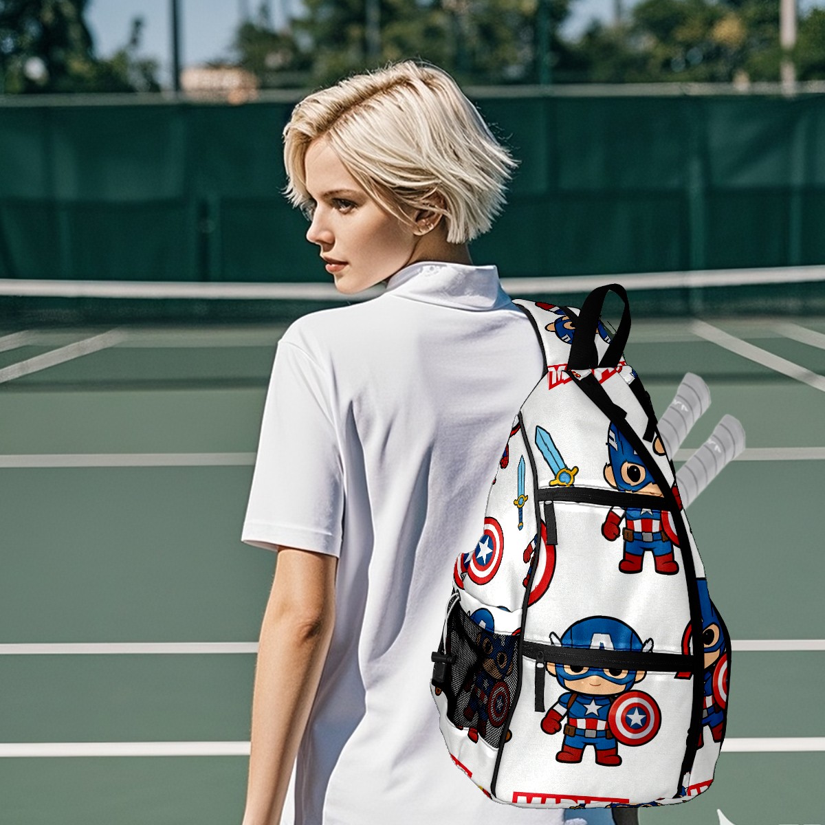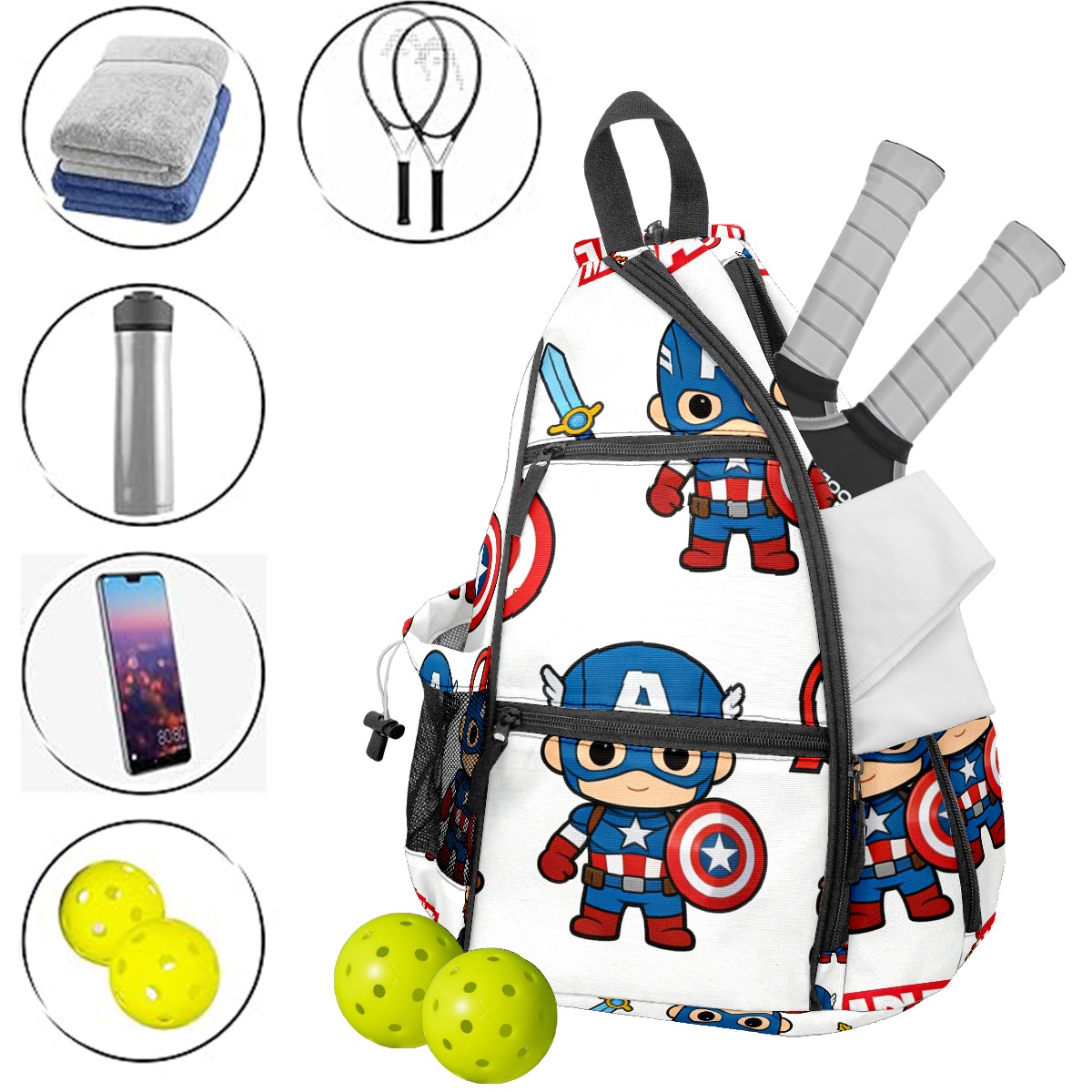 Pickleball Backpack for Women and Men, Adjustable Pickleball Sling Bag for Paddles, Balls & Accessories (创作经典IP图 (65))