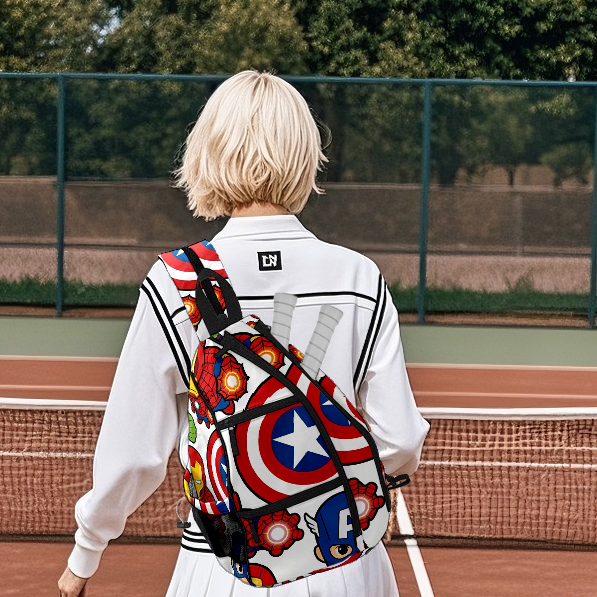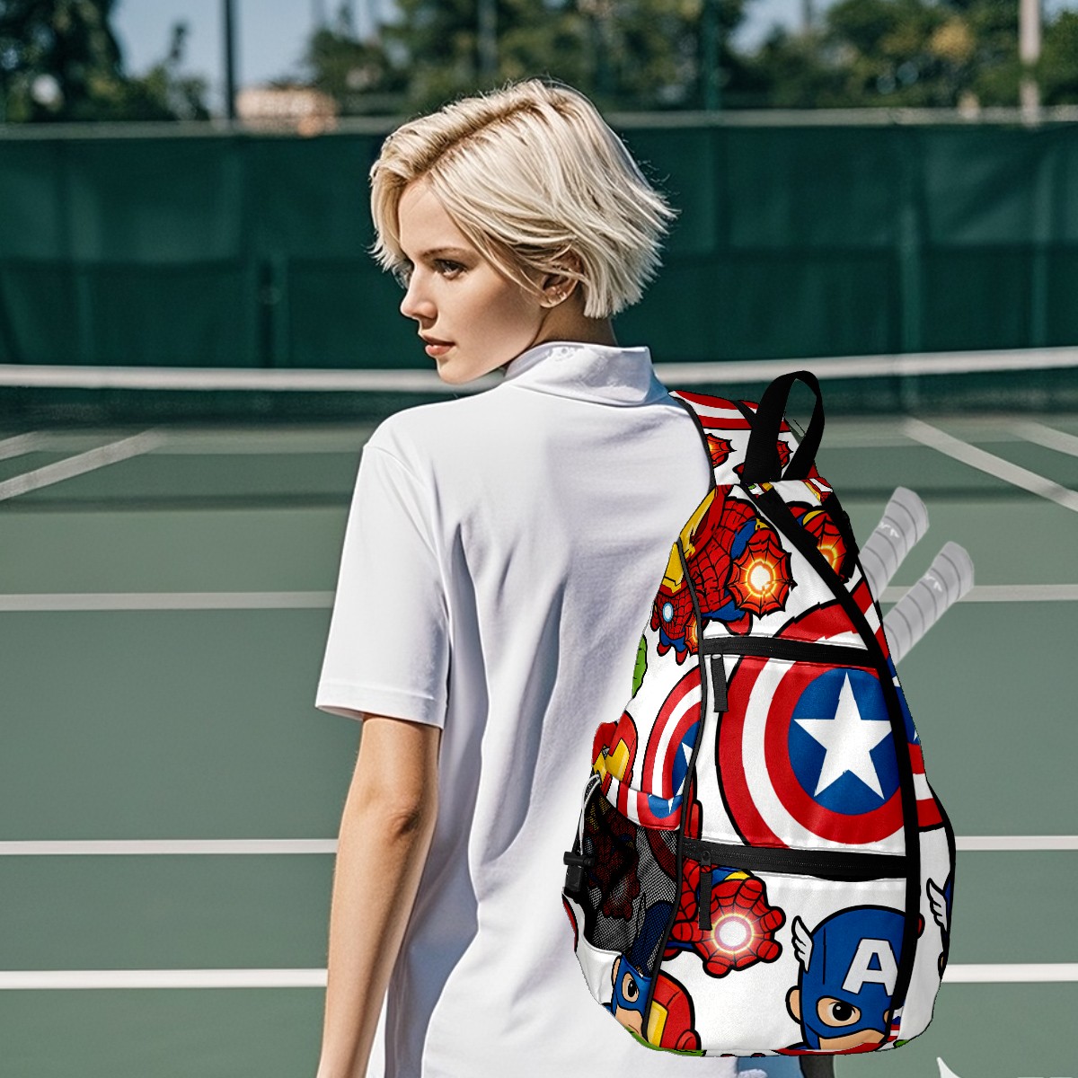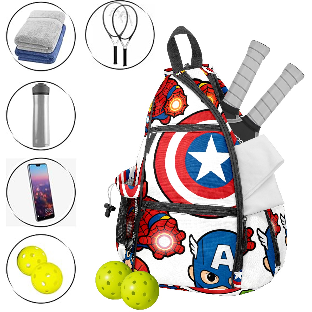 Pickleball Backpack for Women and Men, Adjustable Pickleball Sling Bag for Paddles, Balls & Accessories (创作经典IP图 (49))