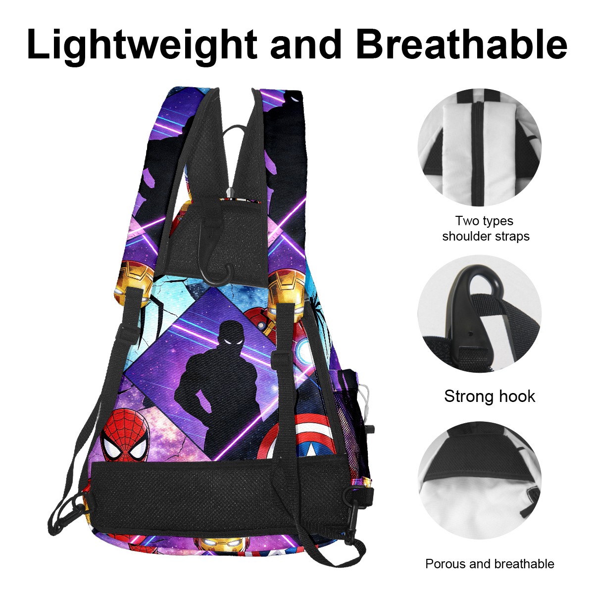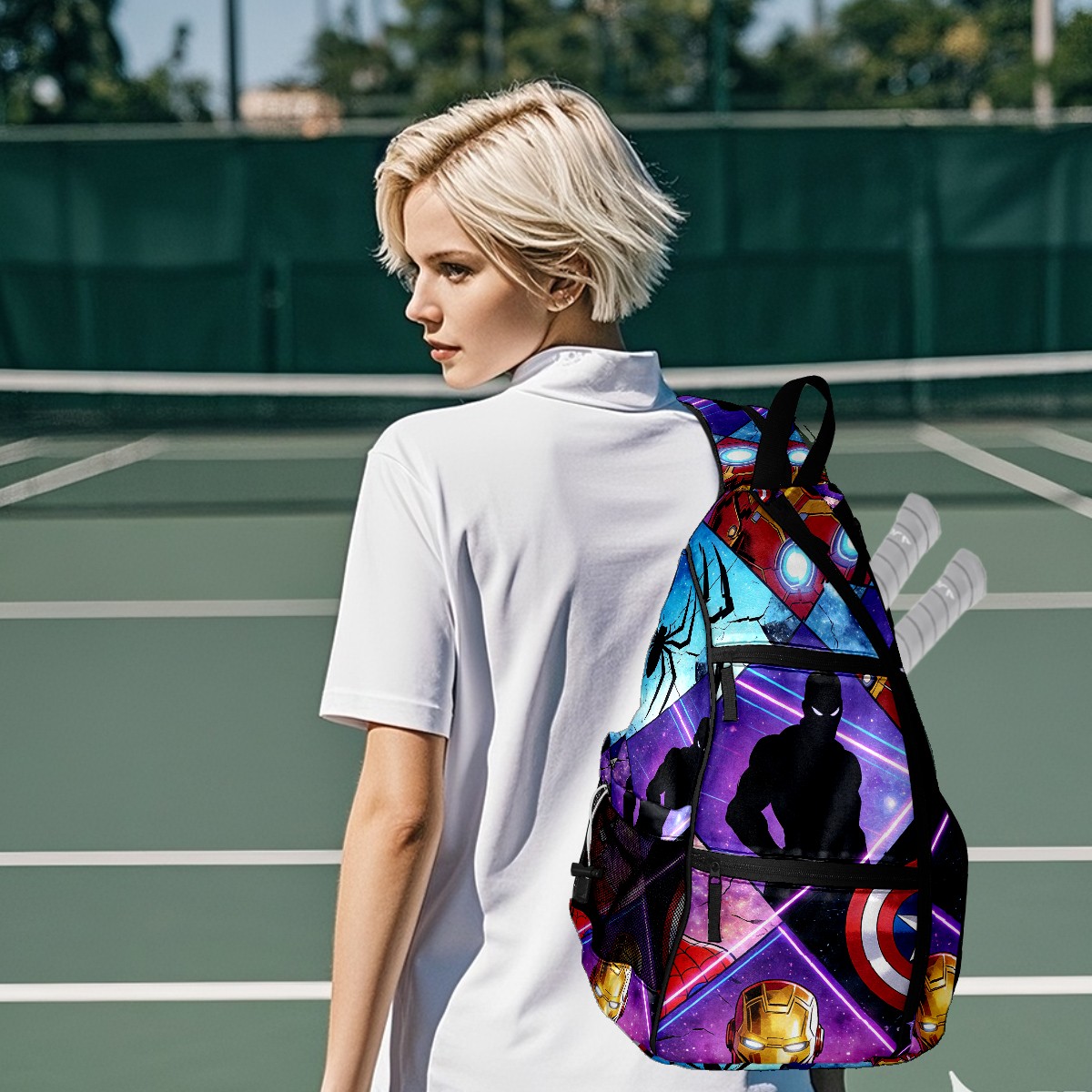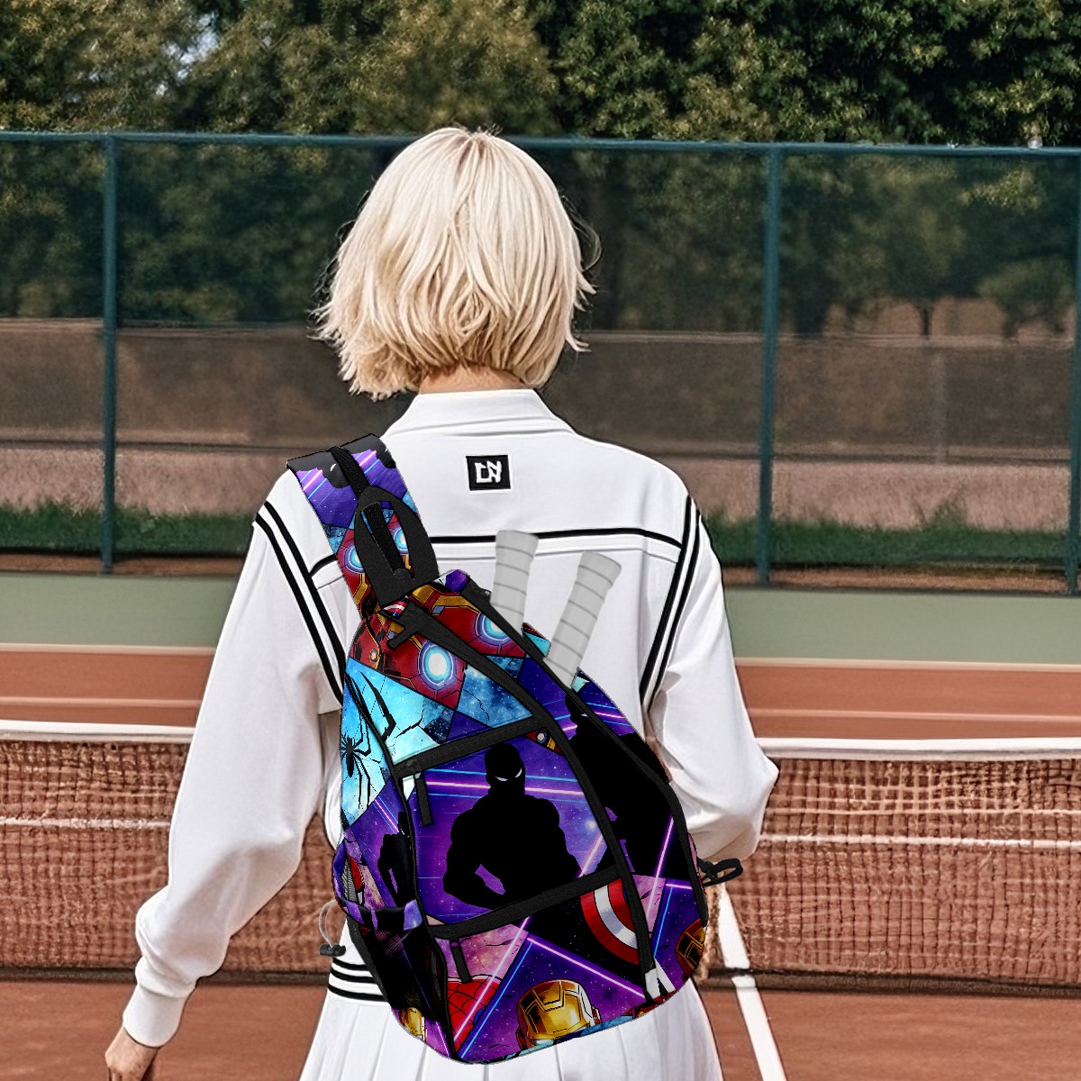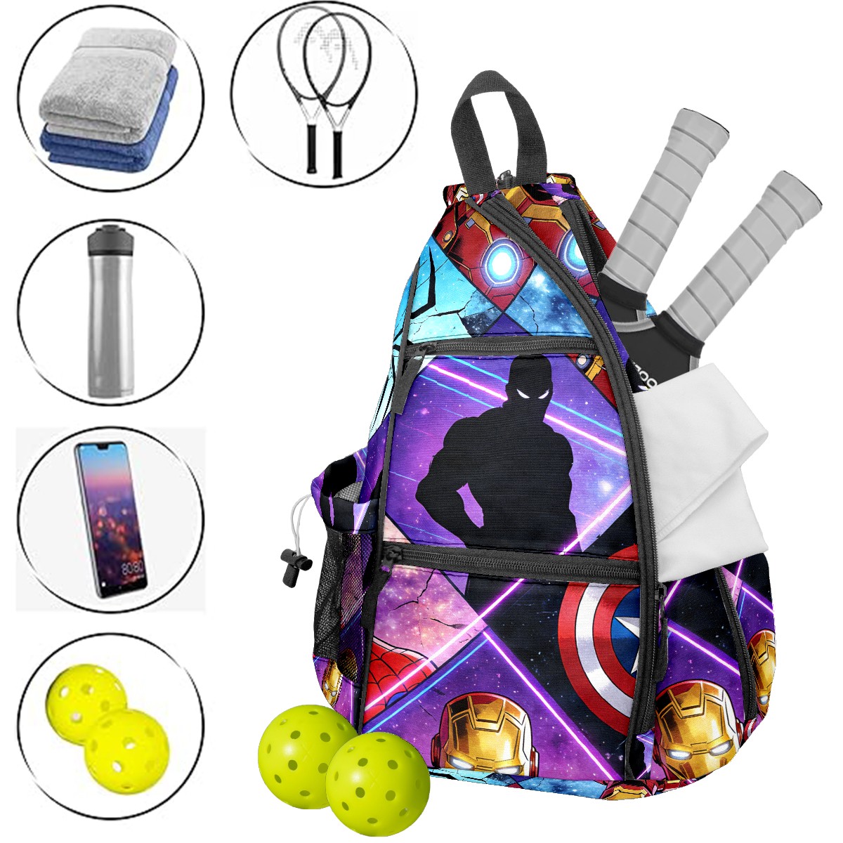 Pickleball Backpack for Women and Men, Adjustable Pickleball Sling Bag for Paddles, Balls & Accessories (创作经典IP图 (53))