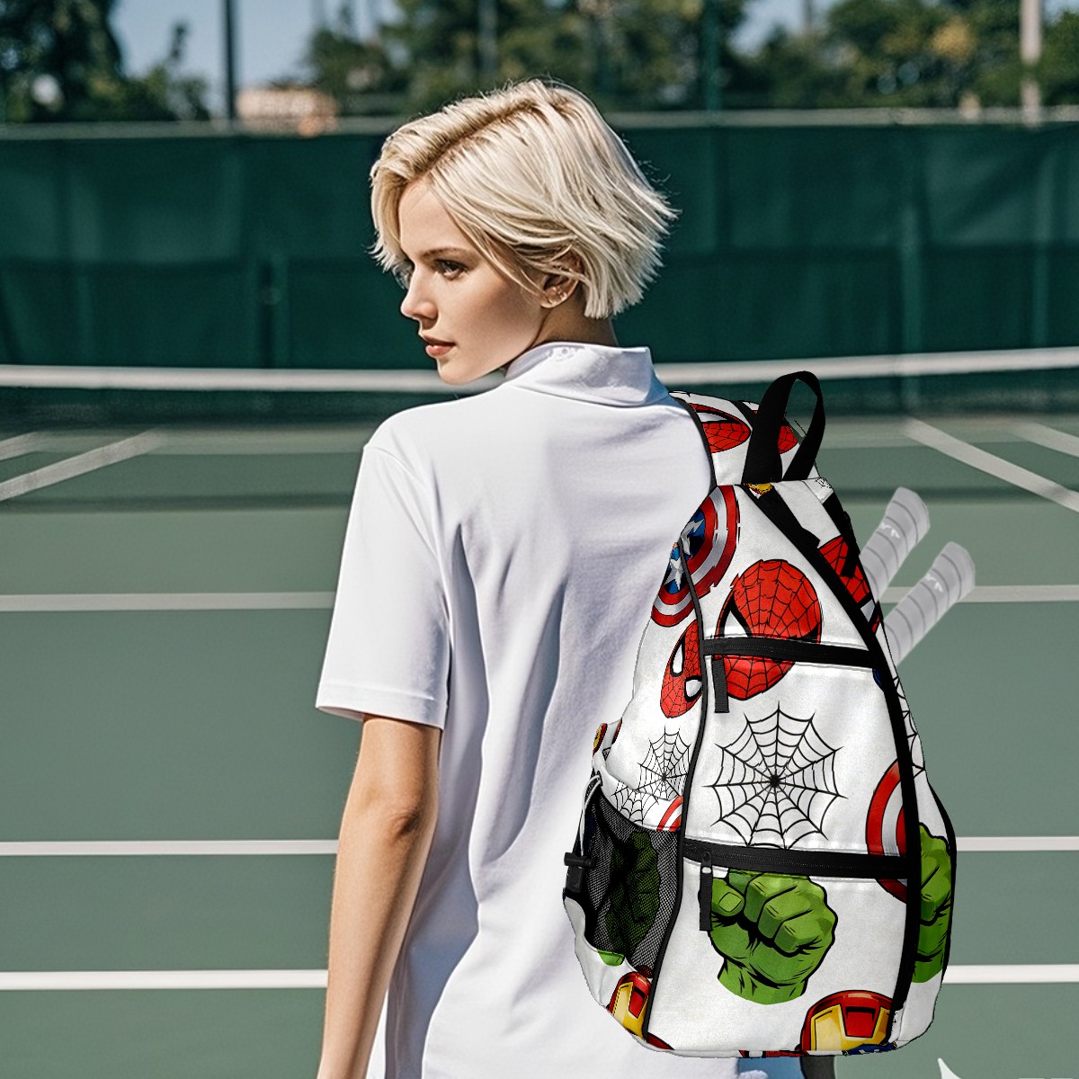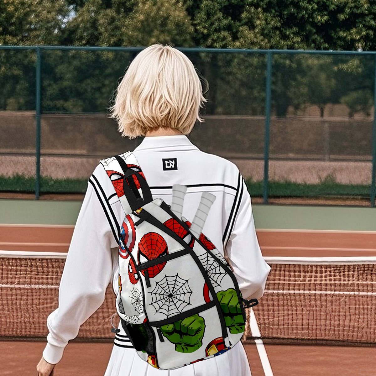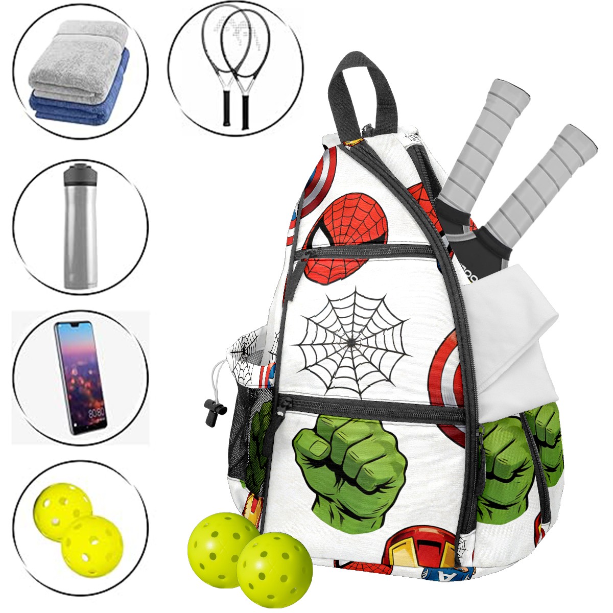 Pickleball Backpack for Women and Men, Adjustable Pickleball Sling Bag for Paddles, Balls & Accessories (创作经典IP图 (38))