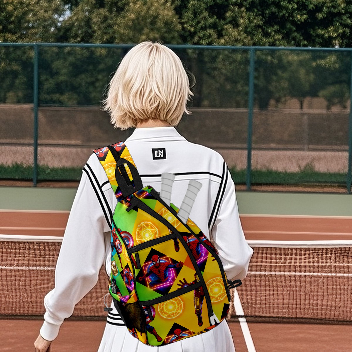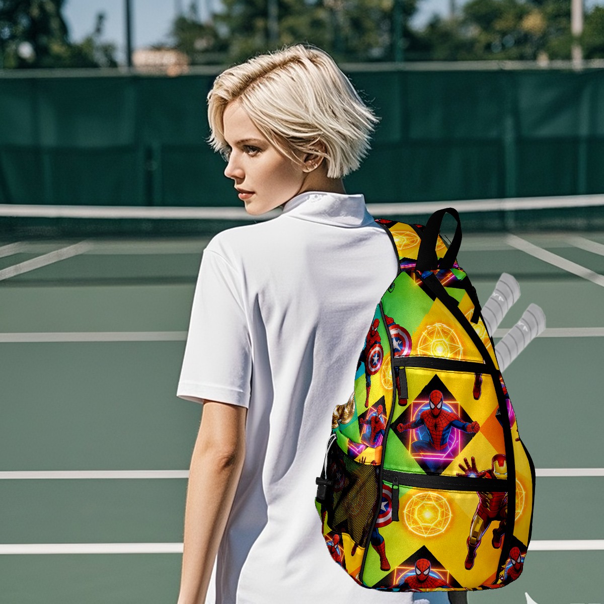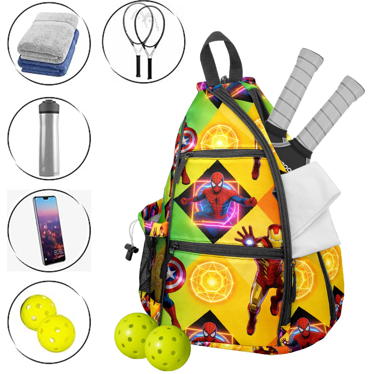 Pickleball Backpack for Women and Men, Adjustable Pickleball Sling Bag for Paddles, Balls & Accessories (创作经典IP图 (32))