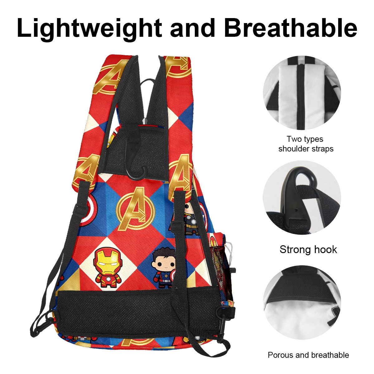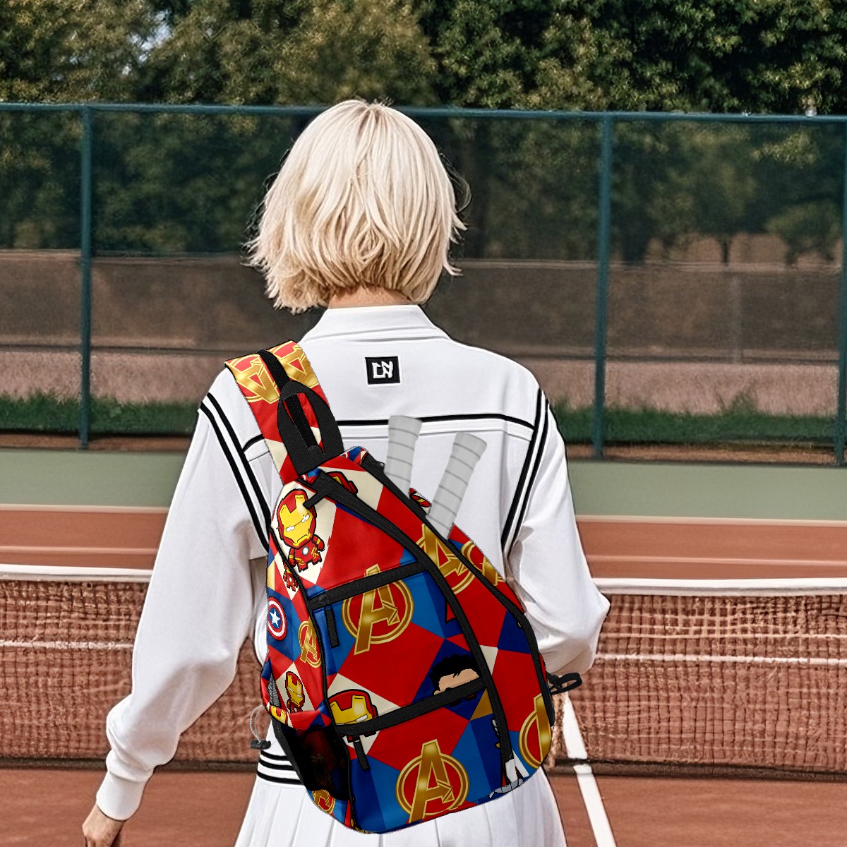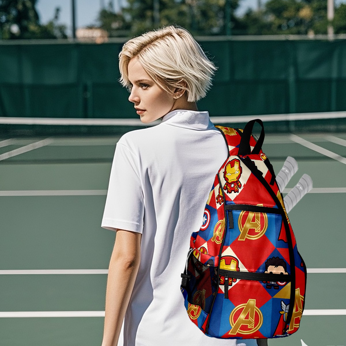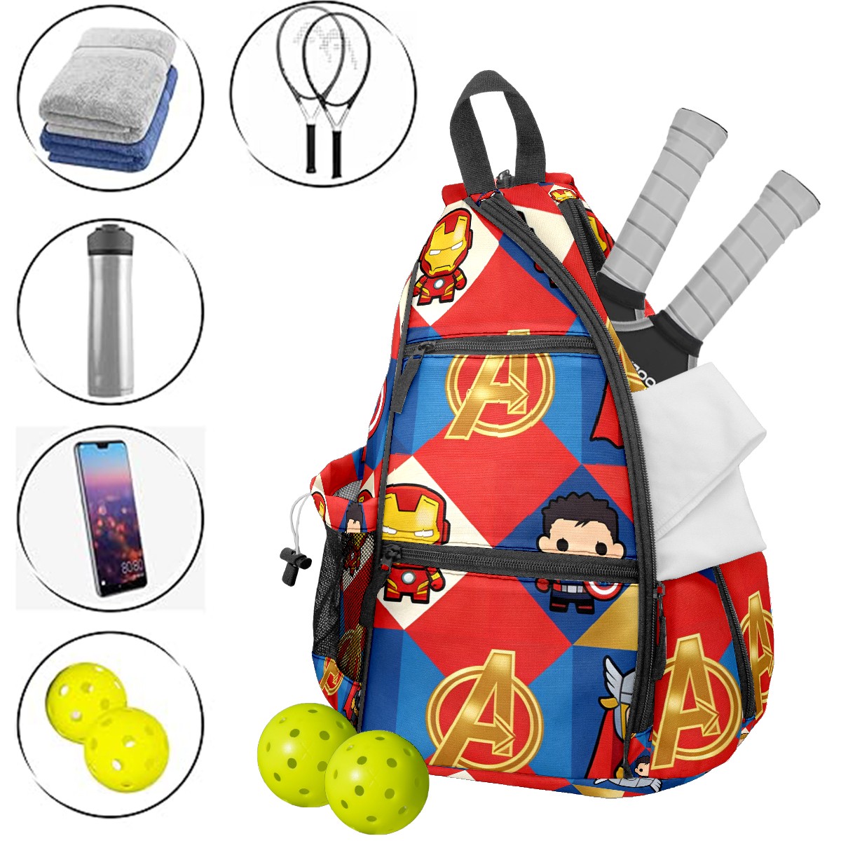 Pickleball Backpack for Women and Men, Adjustable Pickleball Sling Bag for Paddles, Balls & Accessories (创作经典IP图 (25))