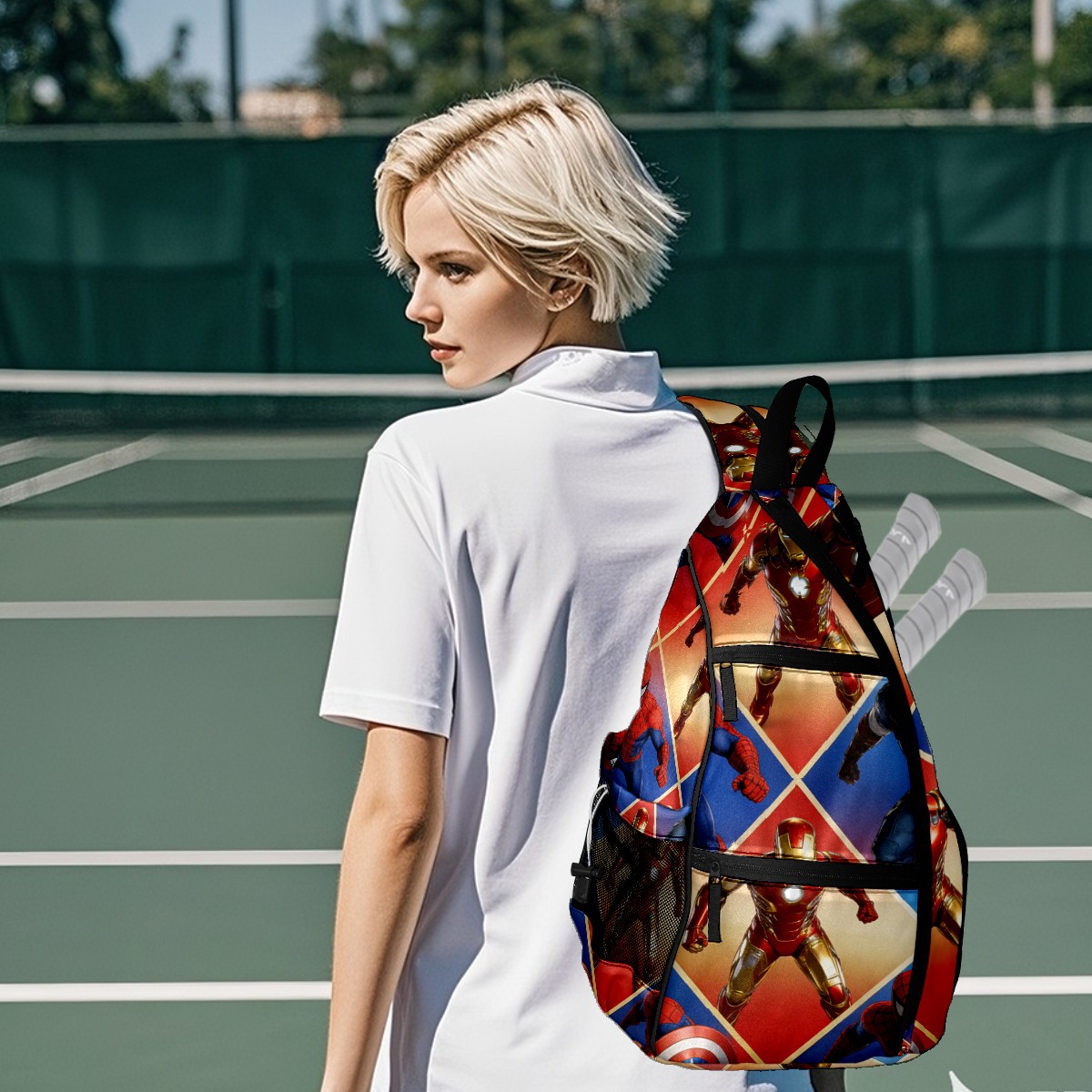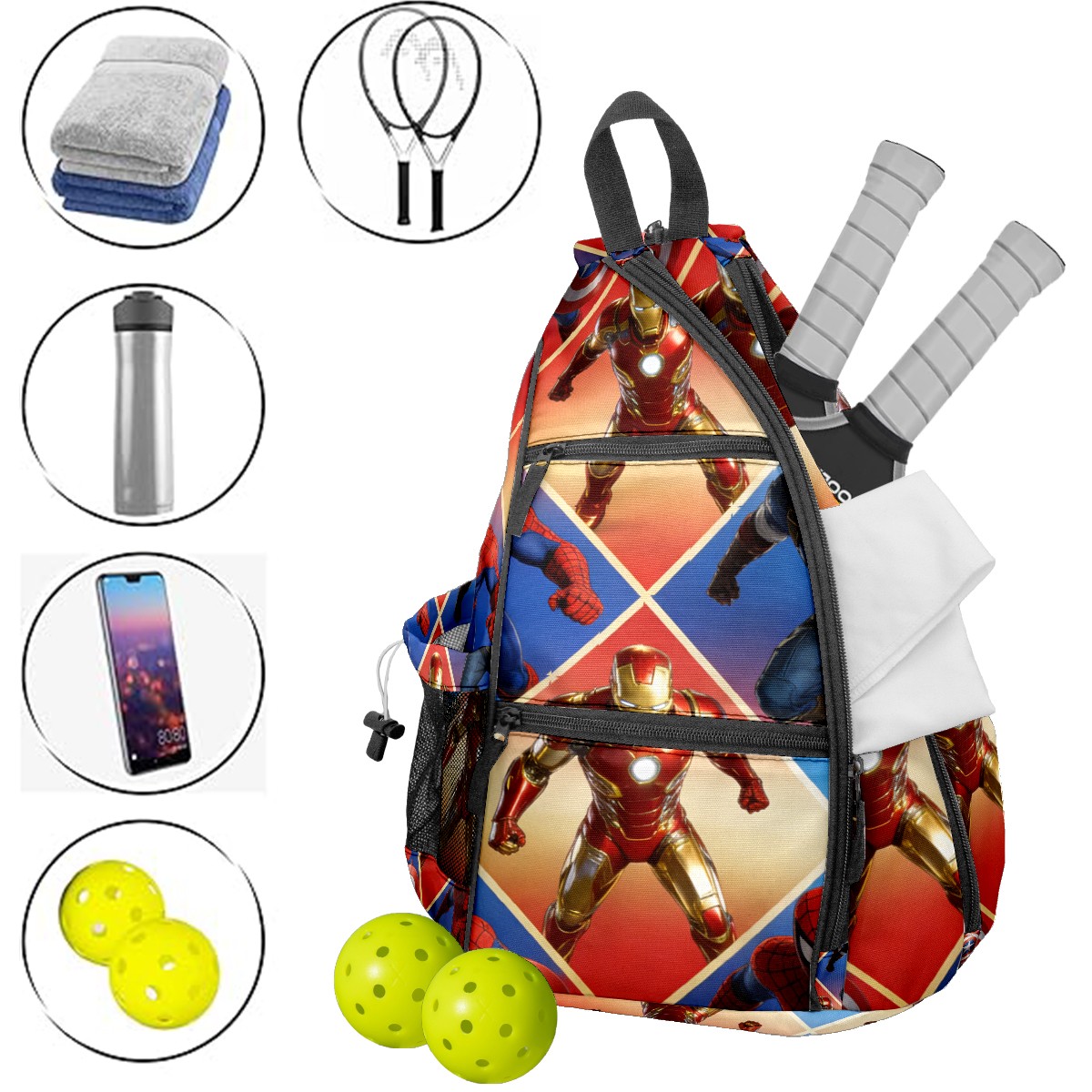 Pickleball Backpack for Women and Men, Adjustable Pickleball Sling Bag for Paddles, Balls & Accessories (创作经典IP图 (16))