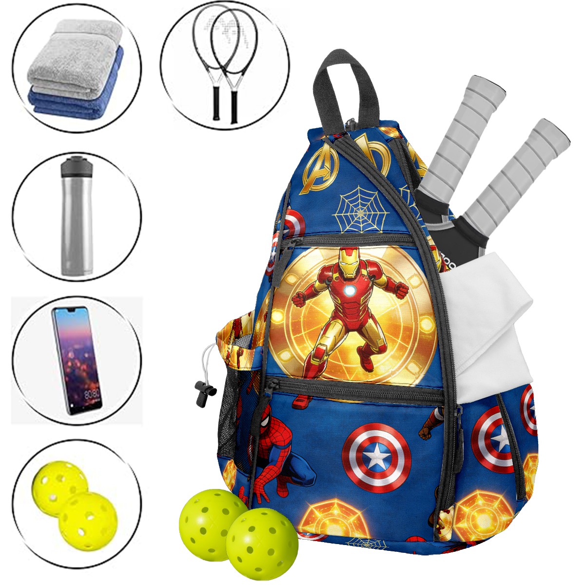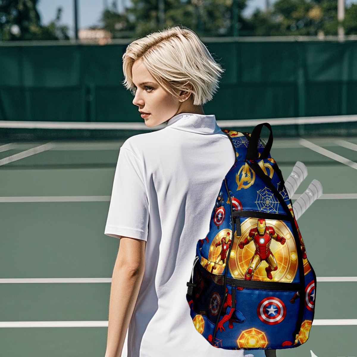Pickleball Backpack for Women and Men, Adjustable Pickleball Sling Bag for Paddles, Balls & Accessories (创作经典IP图 (9))