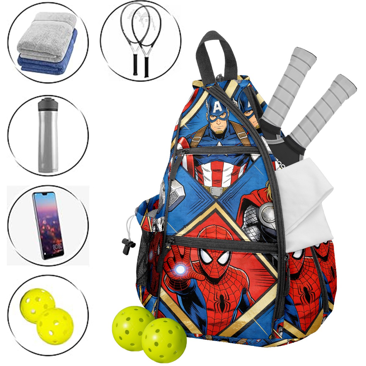 Pickleball Backpack for Women and Men, Adjustable Pickleball Sling Bag for Paddles, Balls & Accessories (创作经典IP图 (11))