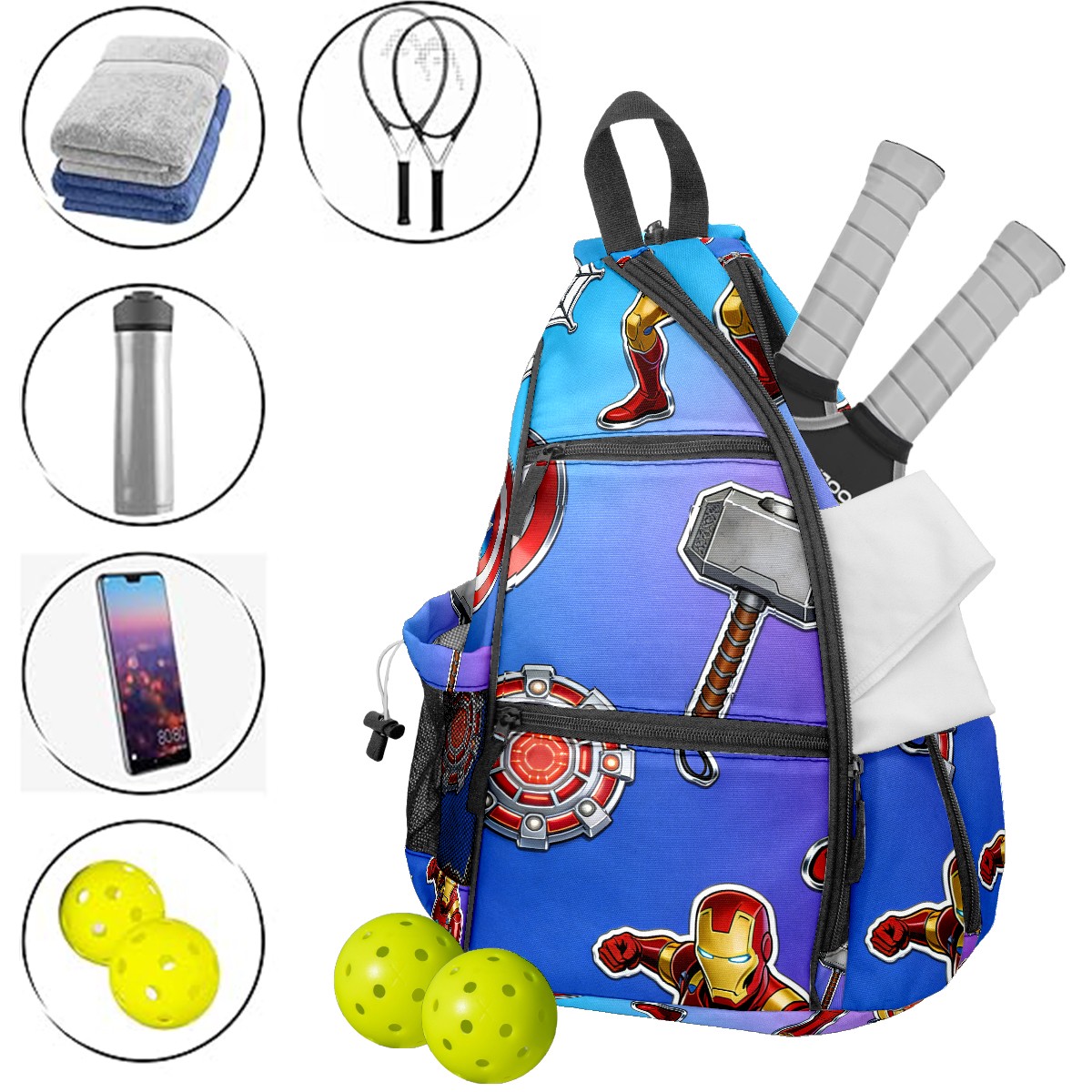 Pickleball Backpack for Women and Men, Adjustable Pickleball Sling Bag for Paddles, Balls & Accessories (创作经典IP图 (8))