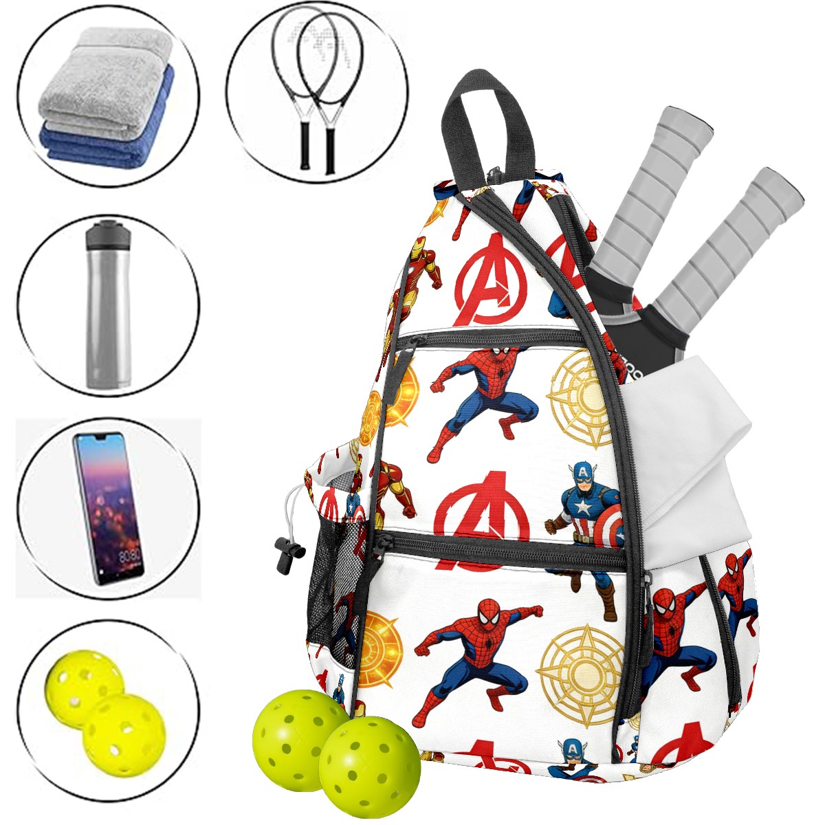 Pickleball Backpack for Women and Men, Adjustable Pickleball Sling Bag for Paddles, Balls & Accessories (创作经典IP图 - 2026-02-11T115432.000)