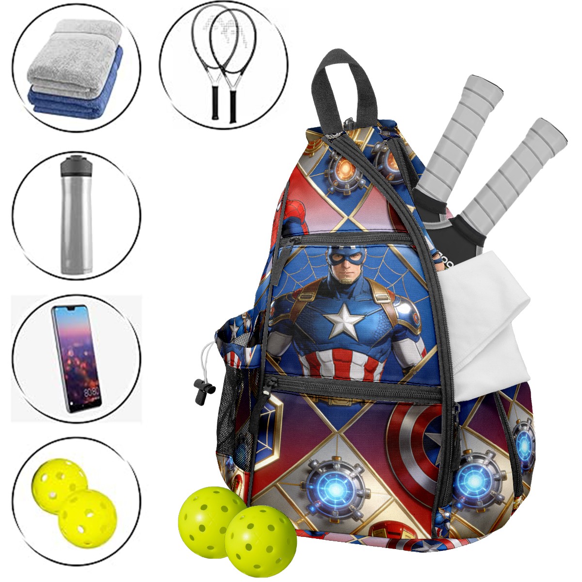 Pickleball Backpack for Women and Men, Adjustable Pickleball Sling Bag for Paddles, Balls & Accessories (创作经典IP图 - 2026-02-11T115410.922)