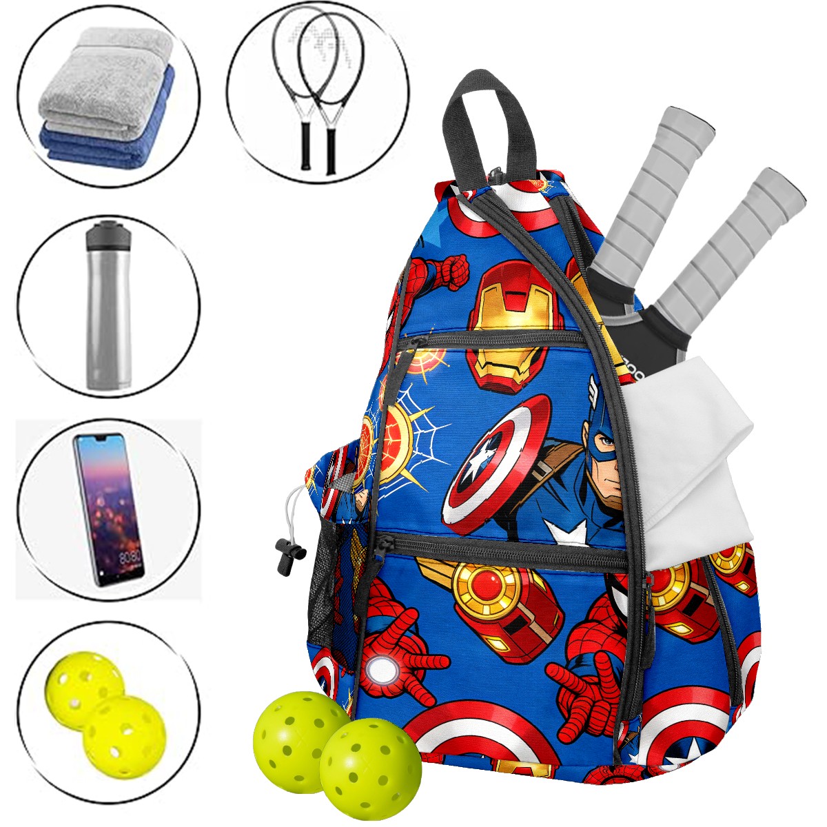 Pickleball Backpack for Women and Men, Adjustable Pickleball Sling Bag for Paddles, Balls & Accessories (创作经典IP图 - 2026-02-11T115408.065)