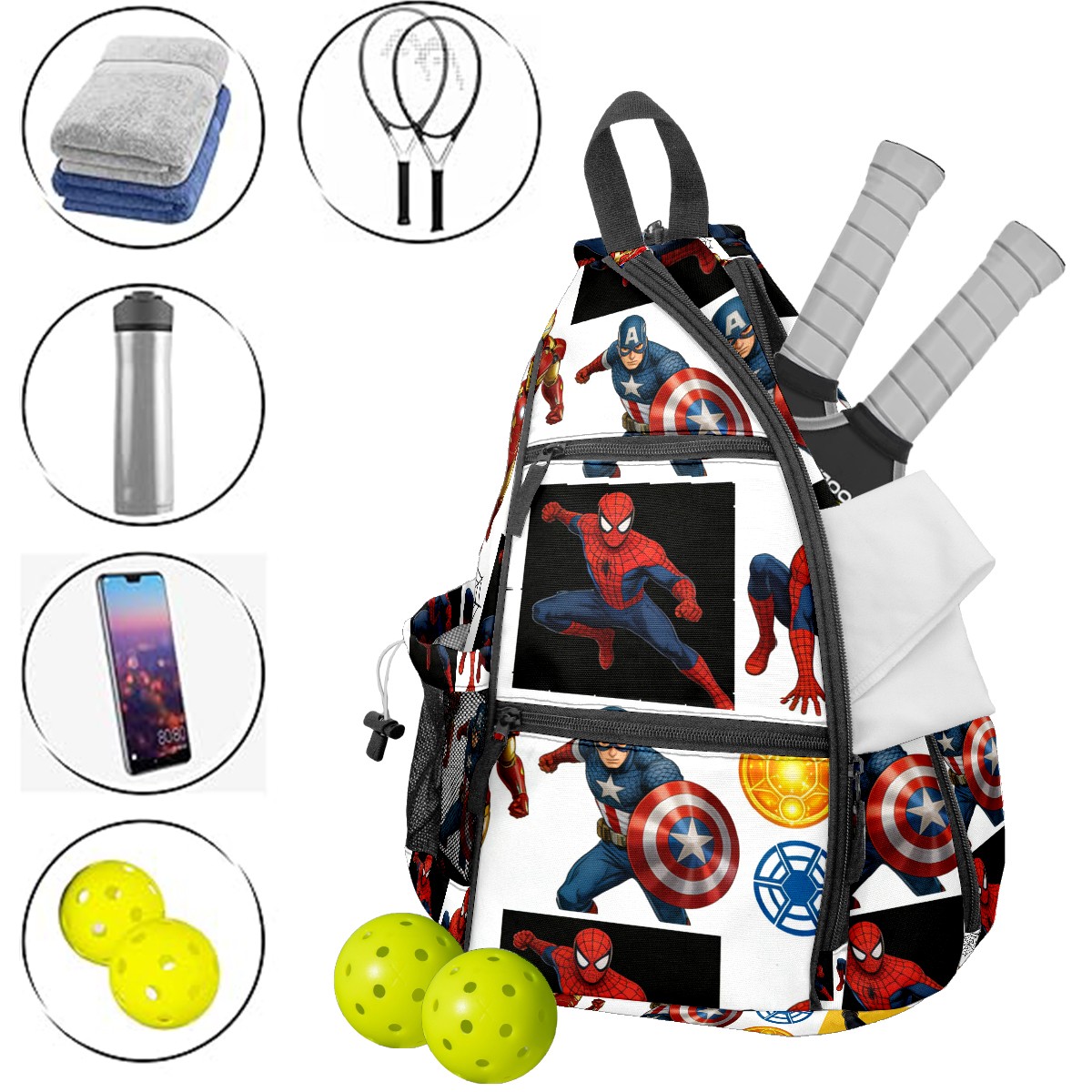Pickleball Backpack for Women and Men, Adjustable Pickleball Sling Bag for Paddles, Balls & Accessories (创作经典IP图 - 2026-02-11T115340.724)