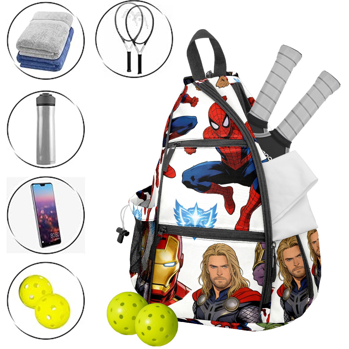 Pickleball Backpack for Women and Men, Adjustable Pickleball Sling Bag for Paddles, Balls & Accessories (创作经典IP图 - 2026-02-11T115317.990)