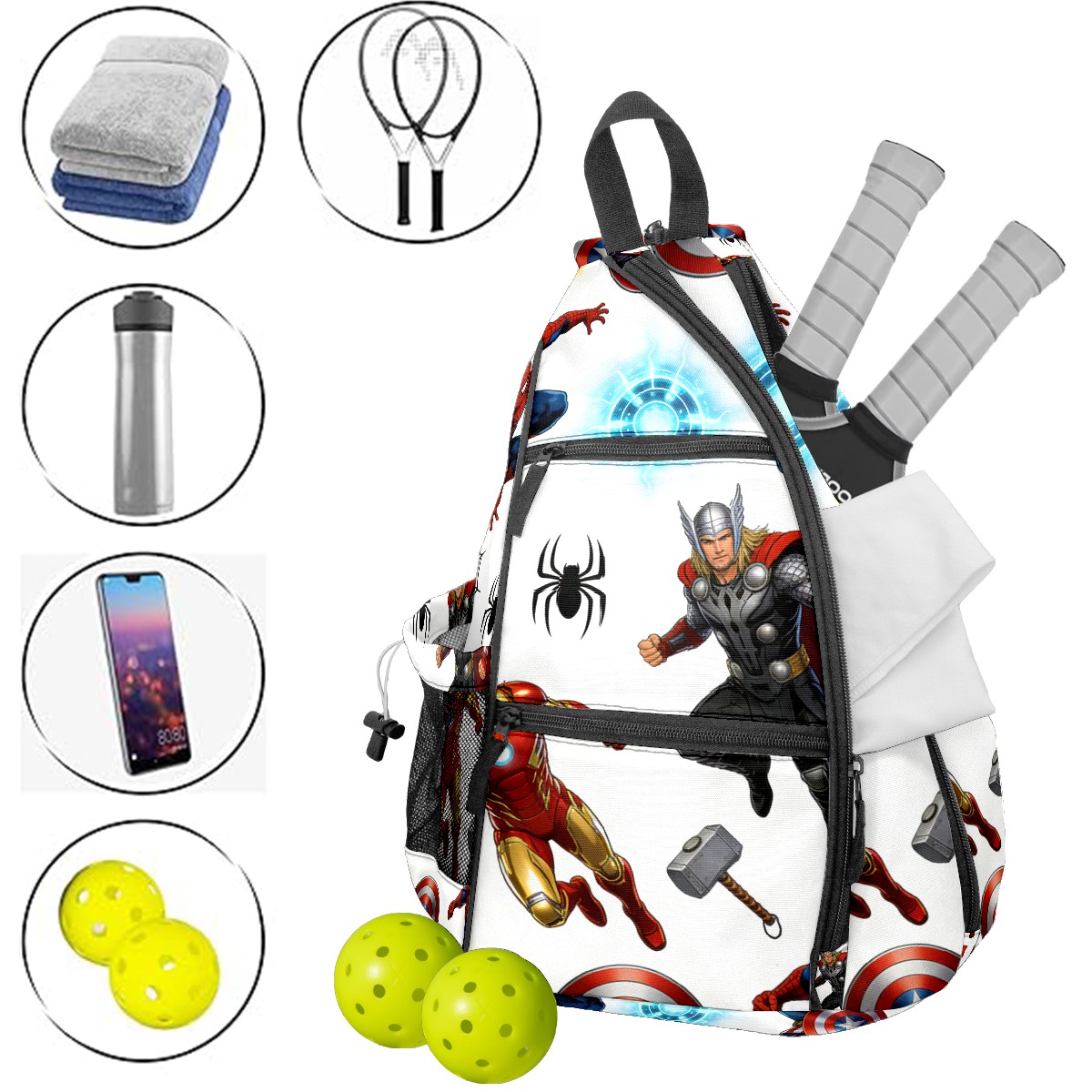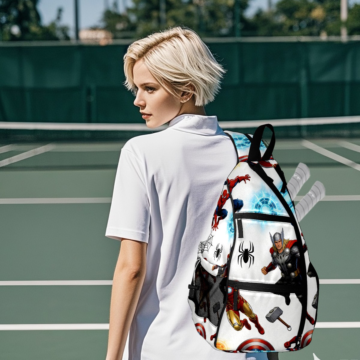 Pickleball Backpack for Women and Men, Adjustable Pickleball Sling Bag for Paddles, Balls & Accessories (创作经典IP图 - 2026-02-11T115253.350)