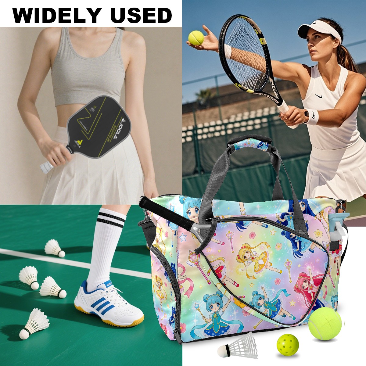 Pickleball Tote Bag Carryall for Paddles Balls and Accessories, Portable Lightweight Gear Bag for Players(生成亚马逊无缝图 (20))