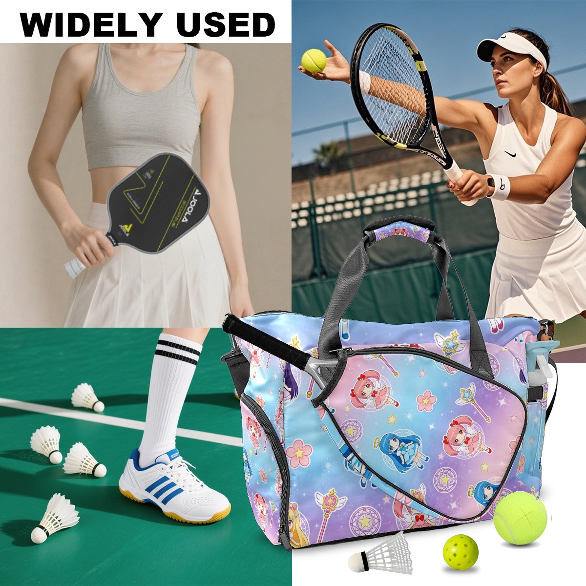 Pickleball Tote Bag Carryall for Paddles Balls and Accessories, Portable Lightweight Gear Bag for Players(生成亚马逊无缝图 (10))