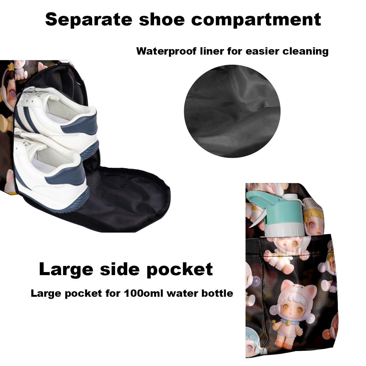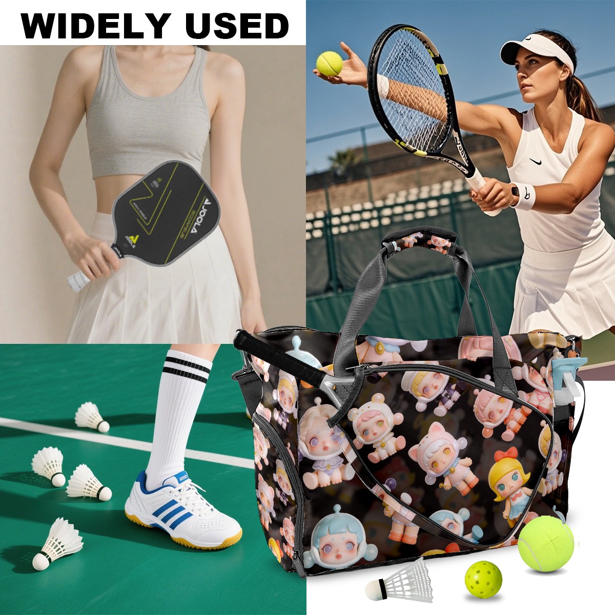 Pickleball Tote Bag Carryall for Paddles Balls and Accessories, Portable Lightweight Gear Bag for Players(创作经典IP图 (69))