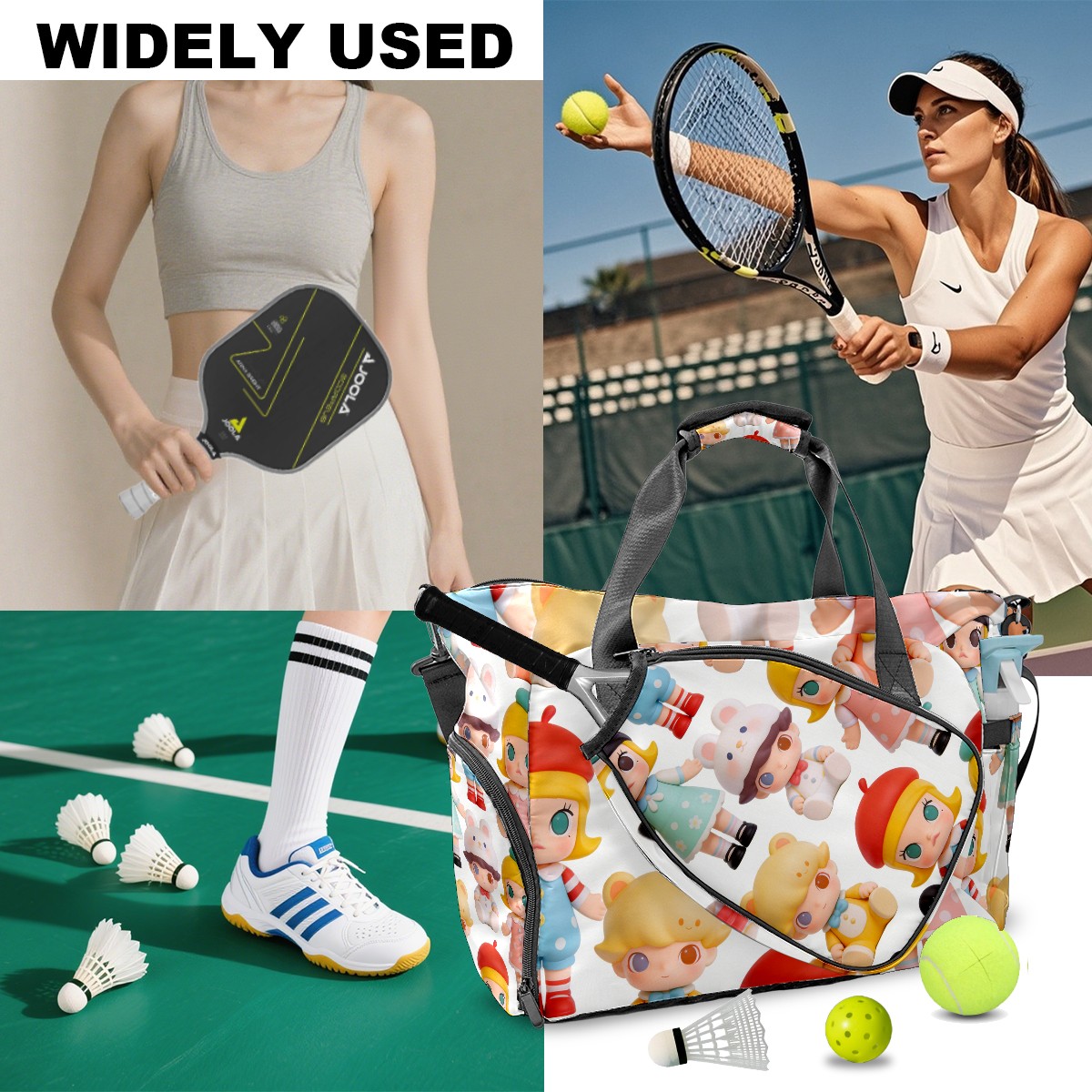 Pickleball Tote Bag Carryall for Paddles Balls and Accessories, Portable Lightweight Gear Bag for Players(创作经典IP图 (58))