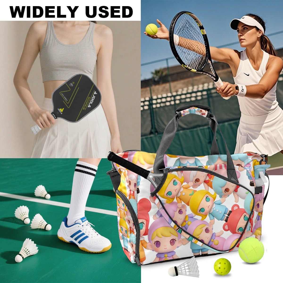 Pickleball Tote Bag Carryall for Paddles Balls and Accessories, Portable Lightweight Gear Bag for Players(创作经典IP图 (24))