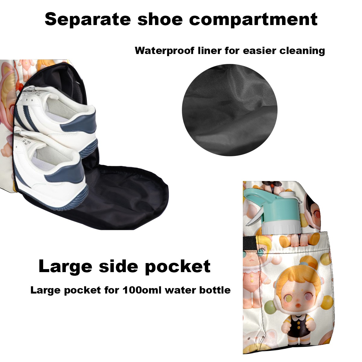 Pickleball Tote Bag Carryall for Paddles Balls and Accessories, Portable Lightweight Gear Bag for Players(创作经典IP图 (13))