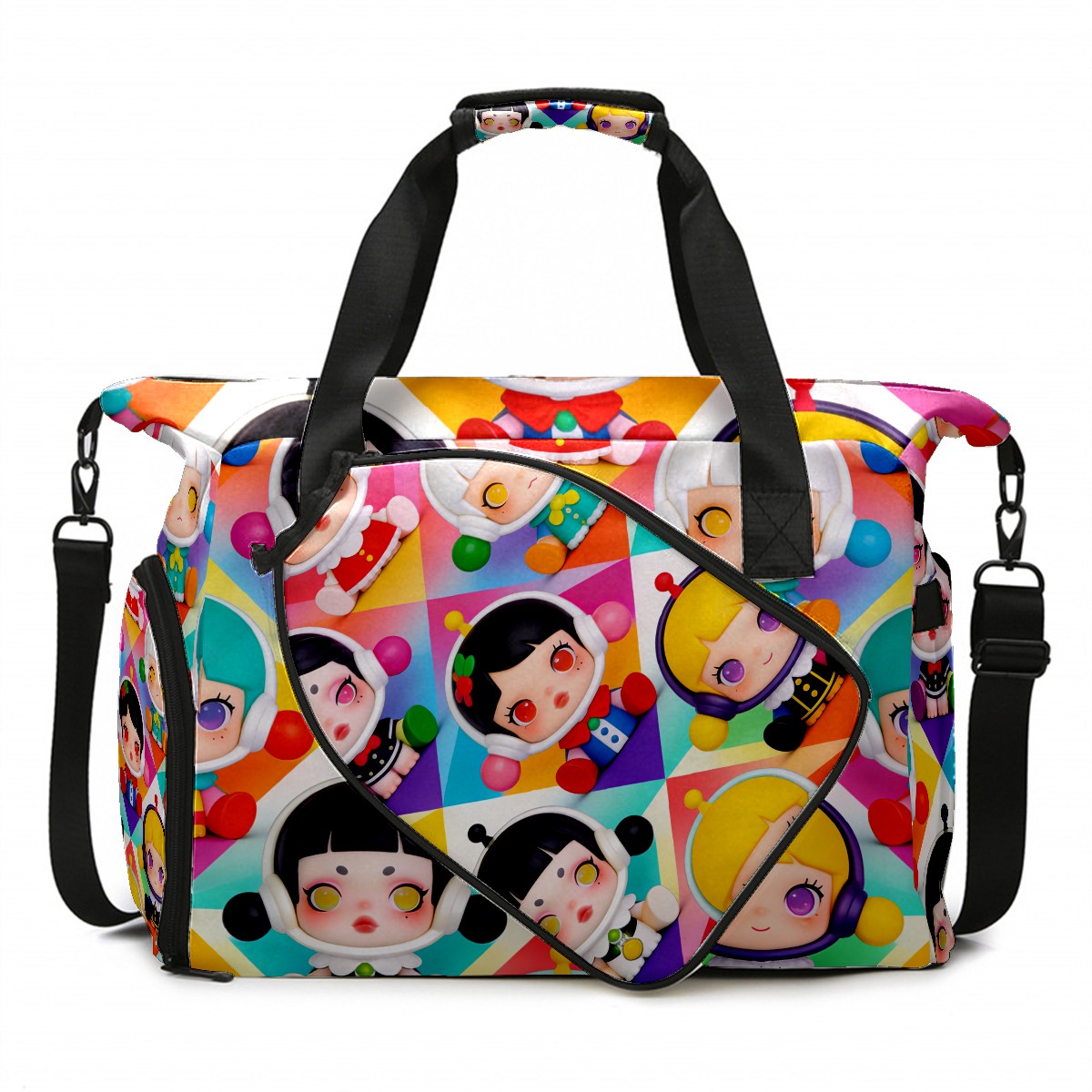 Pickleball Tote Bag Carryall for Paddles Balls and Accessories, Portable Lightweight Gear Bag for Players(创作经典IP图 (5))