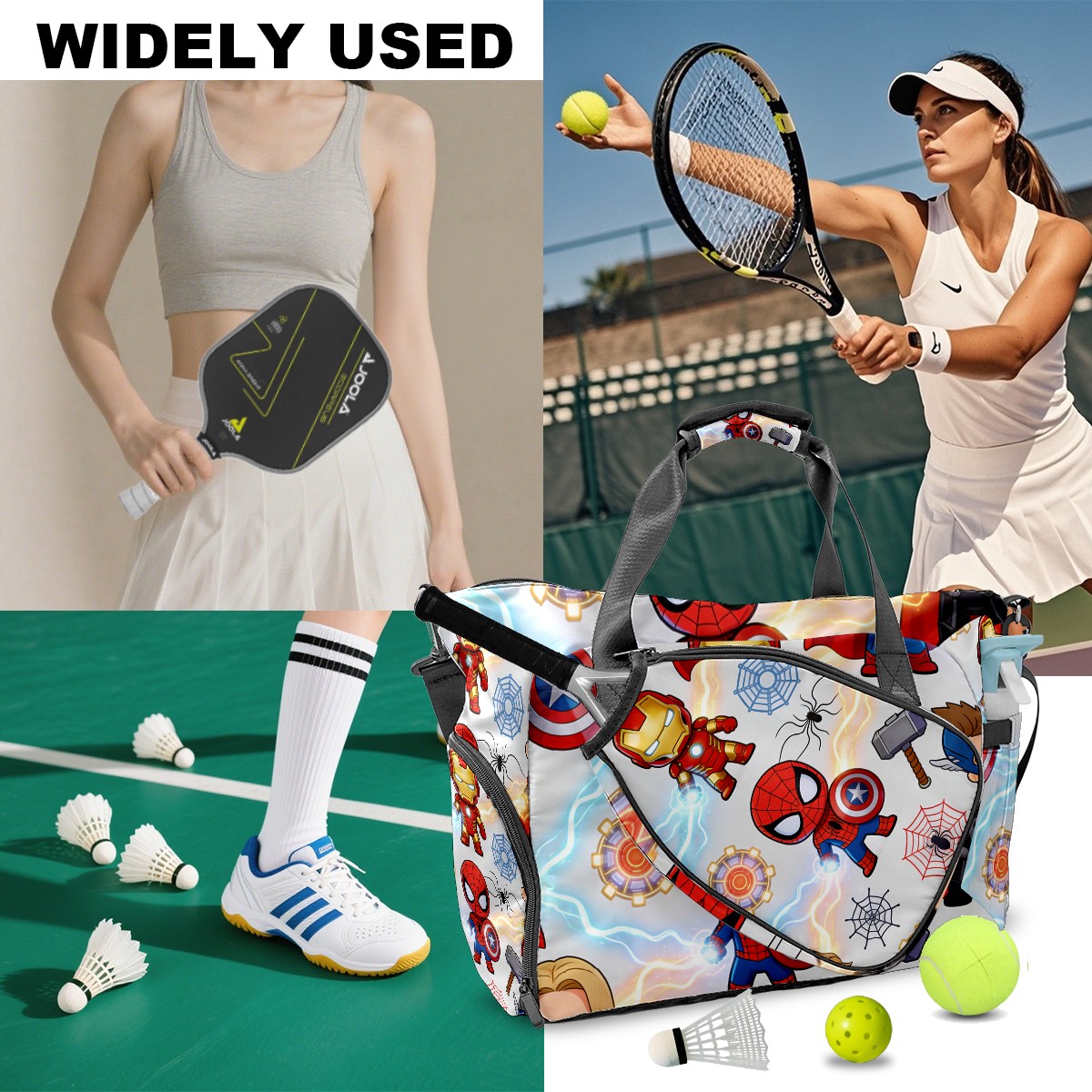 Pickleball Tote Bag Carryall for Paddles Balls and Accessories, Portable Lightweight Gear Bag for Players(创作经典IP图 (98))