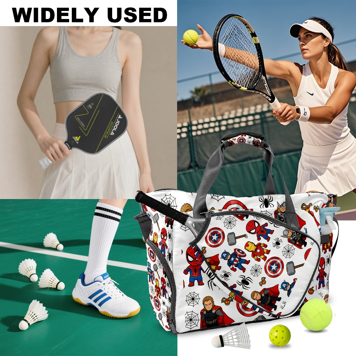 Pickleball Tote Bag Carryall for Paddles Balls and Accessories, Portable Lightweight Gear Bag for Players(创作经典IP图 (100))