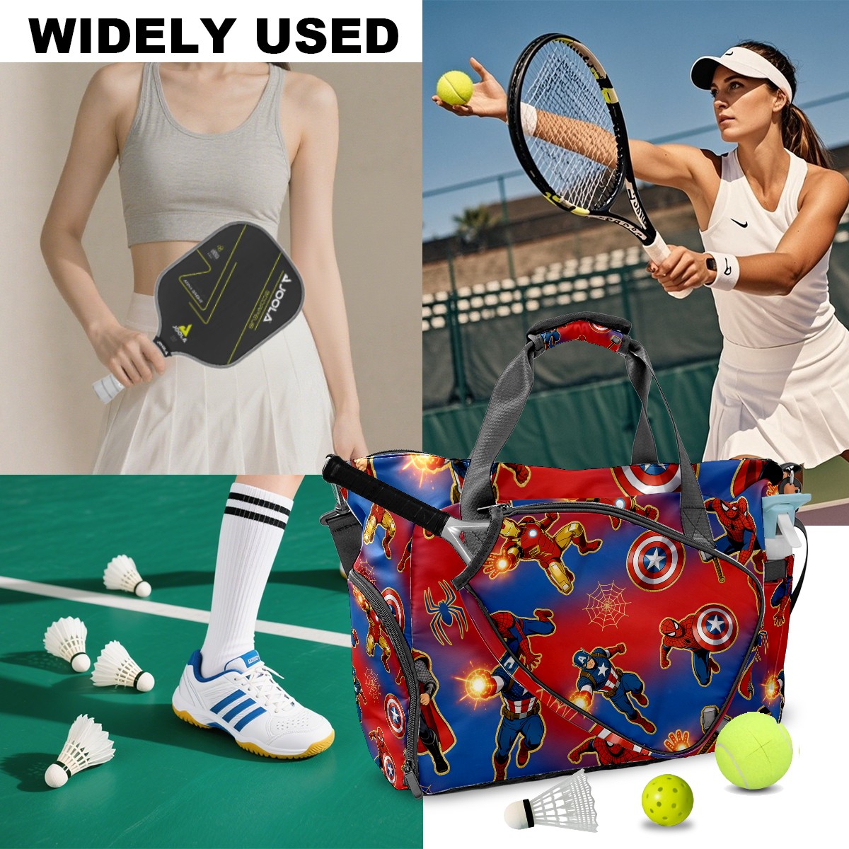 Pickleball Tote Bag Carryall for Paddles Balls and Accessories, Portable Lightweight Gear Bag for Players(创作经典IP图 (97))