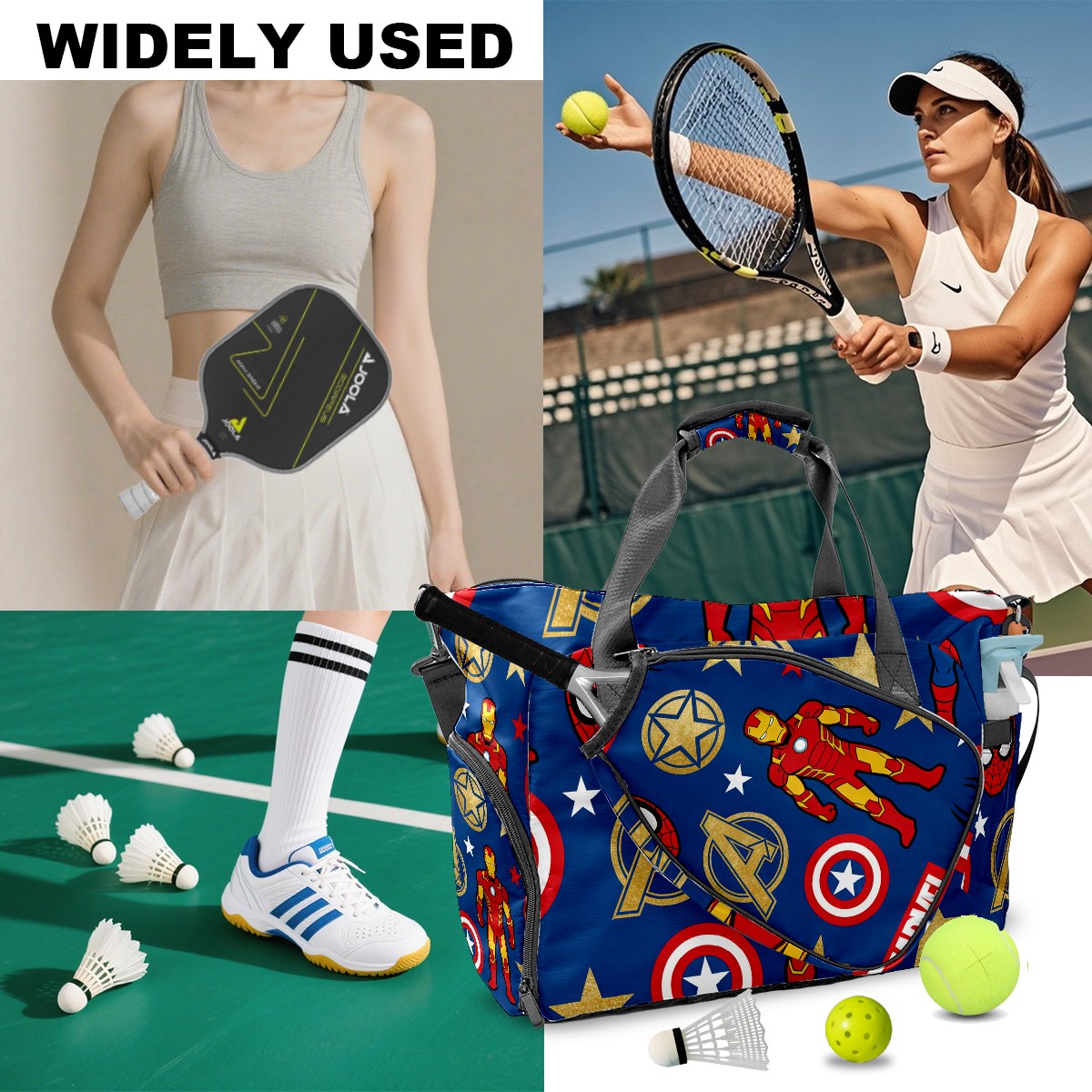Pickleball Tote Bag Carryall for Paddles Balls and Accessories, Portable Lightweight Gear Bag for Players(创作经典IP图 (85))