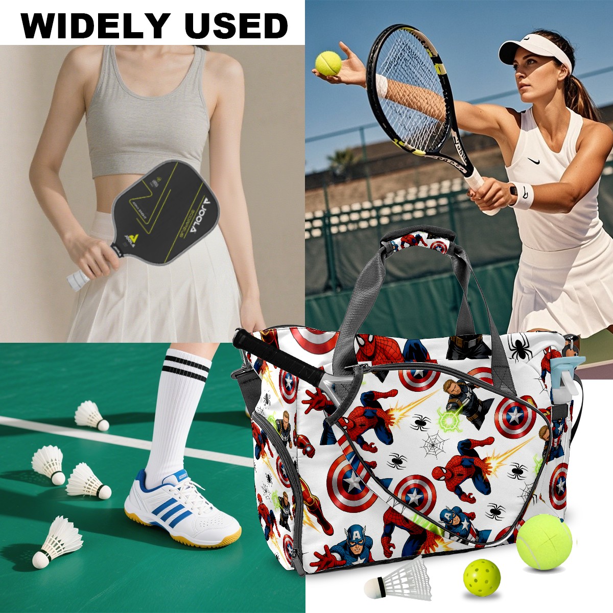 Pickleball Tote Bag Carryall for Paddles Balls and Accessories, Portable Lightweight Gear Bag for Players(创作经典IP图 (87))