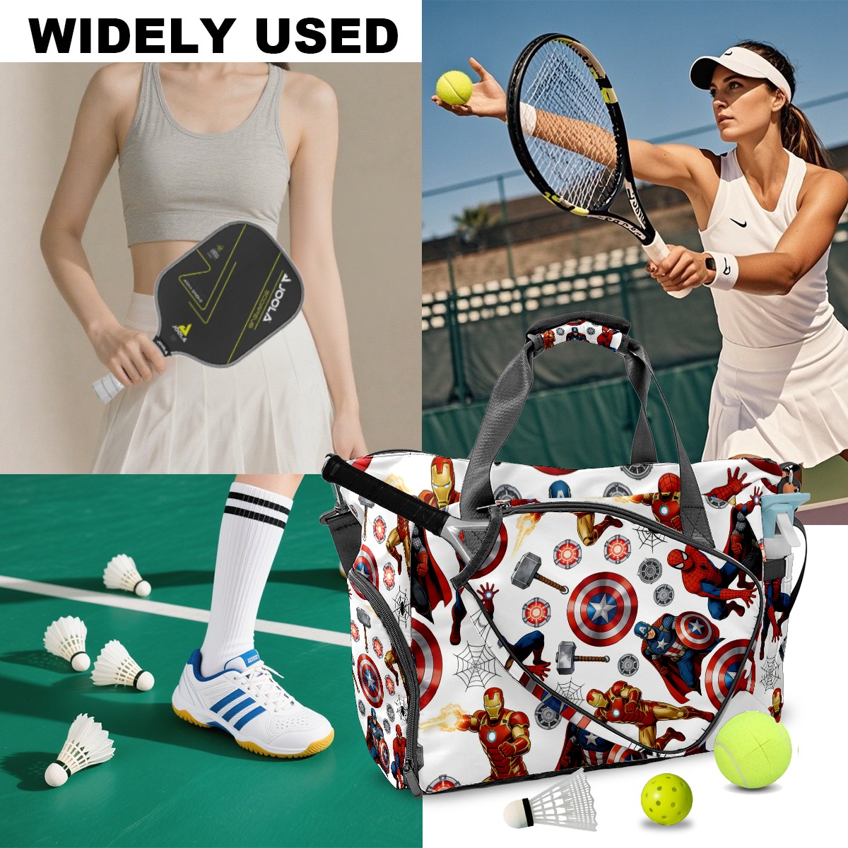 Pickleball Tote Bag Carryall for Paddles Balls and Accessories, Portable Lightweight Gear Bag for Players(创作经典IP图 (39))